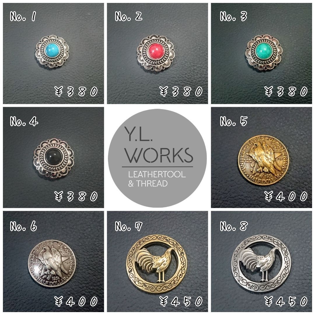 画像4〜6枚目、出品中のコンチョでしたらどの組み合わせでも上記のように対応させていただきます!