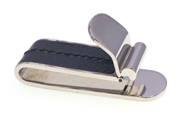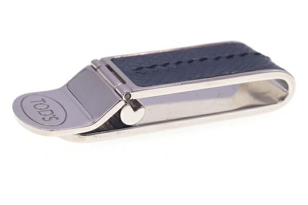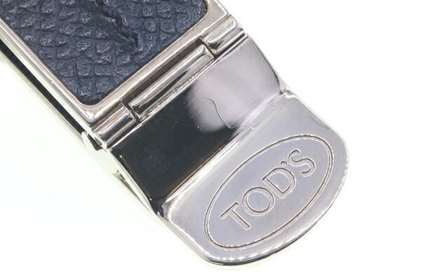 トッズマネークリップネイビーシルバーレザーメタル中古ビルクリップ札留めビジネスロゴメンズTOD'S