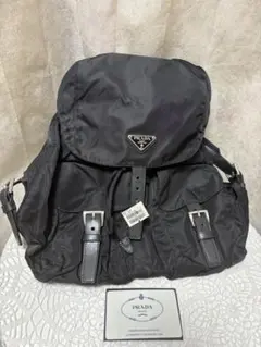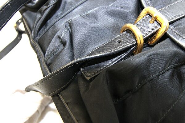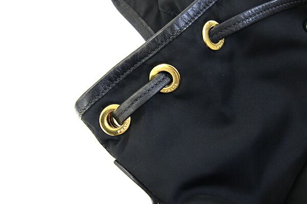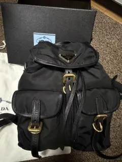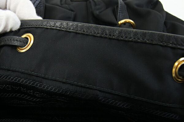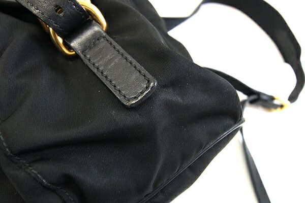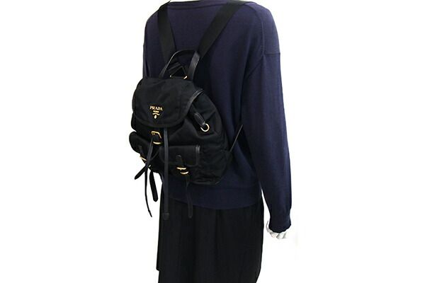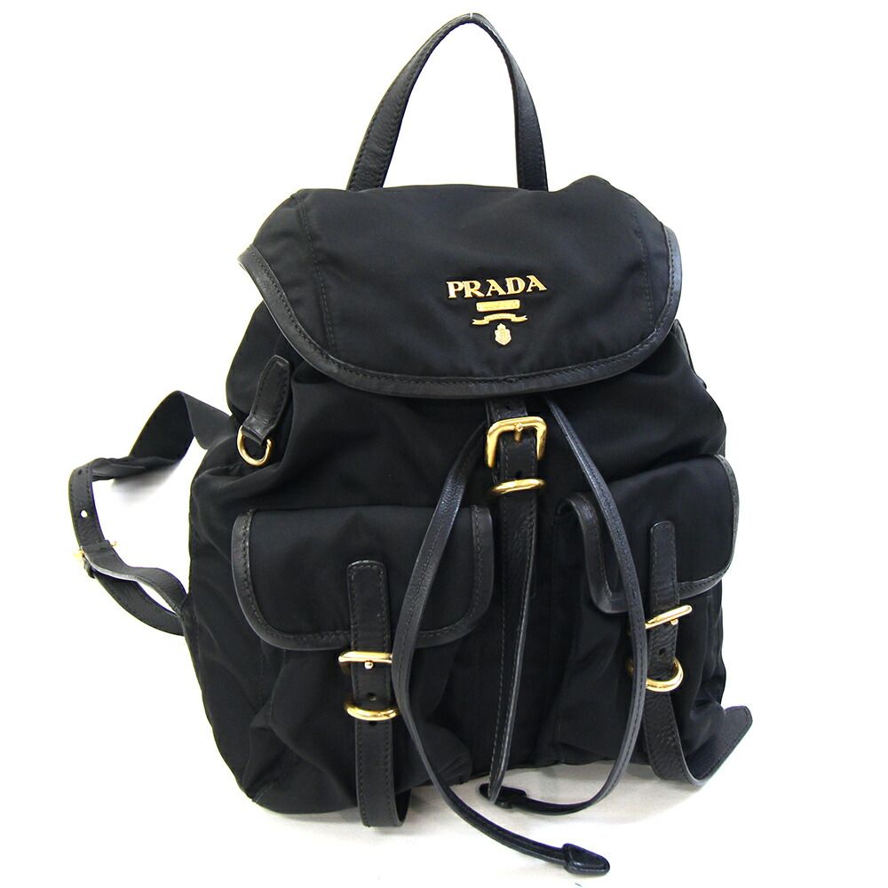 プラダバックパック1BZ677ブラックナイロンレザー中古リュック鞄ロゴレディースPRADA