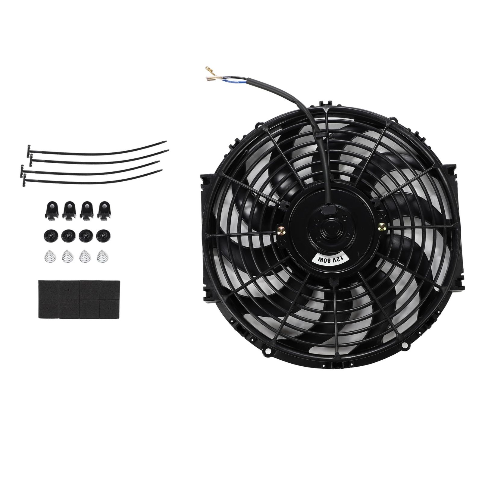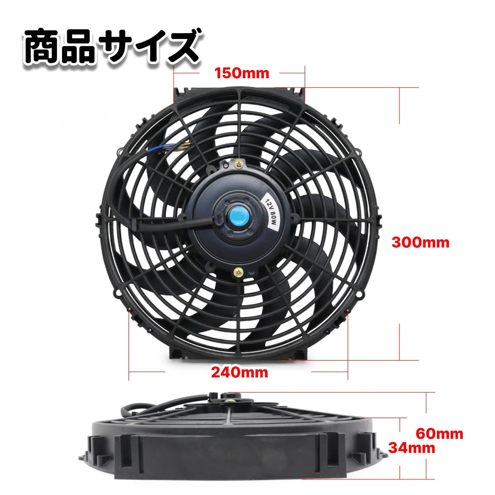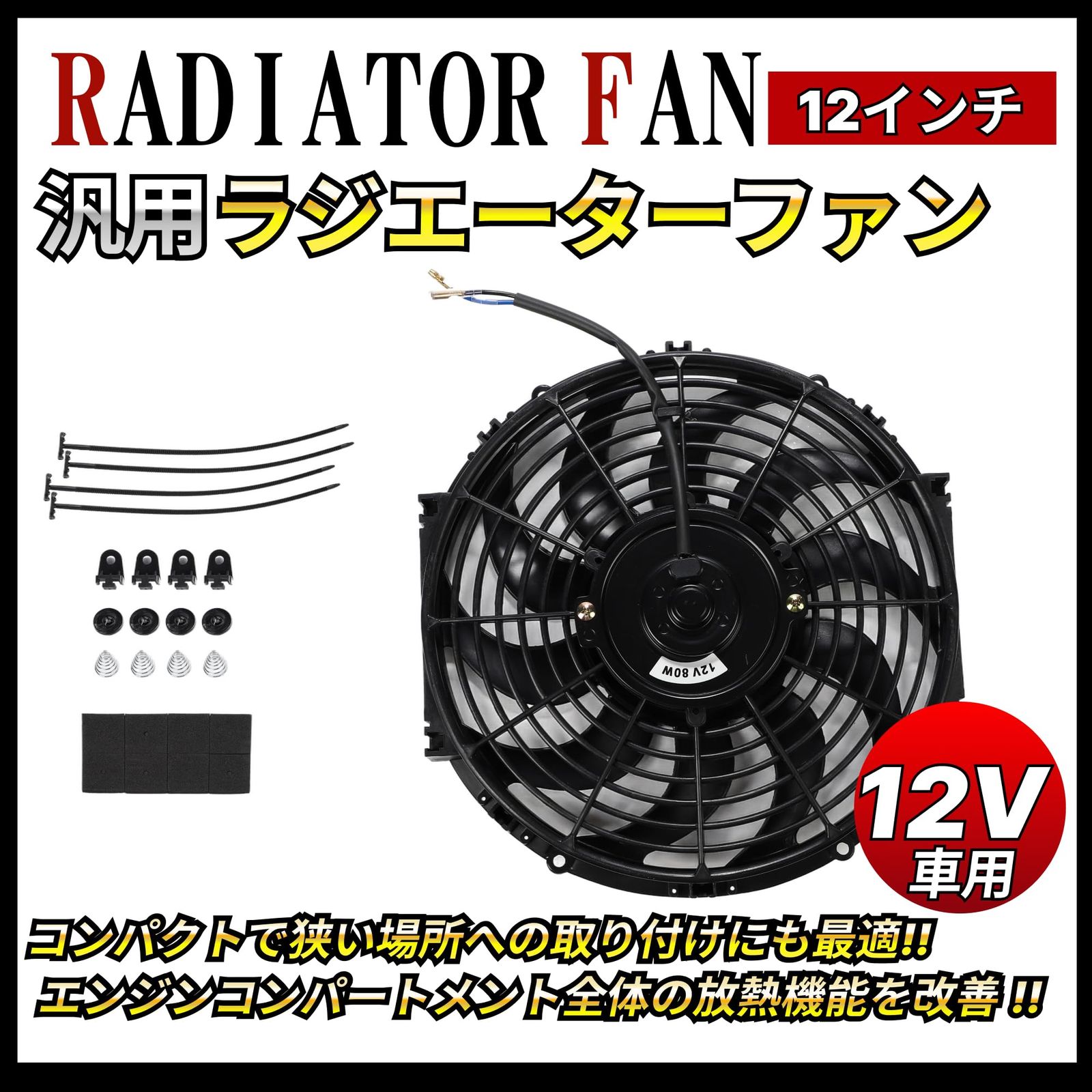 RPMの回転数を持ち、低ノイズでスムーズな運転が可能になります。また商品の材質は耐久性に優れたPP製なため、長期間にわたってご利用頂けます。加えて、取り付けキットも付属しているため、あらたな部品の購入なく取り付けが可能です。サイズが合えば取り付け可能な汎用品のため、スポーツカー、セダン、ステーションワゴン、カスタム車、さらにはバイクの水冷ラジエーターファンや大型オイルクーラーの冷却ファンとしても使用可能です。エアコンコンデンサーファンとしても機能し、エアコンの効きが悪い車にも効果的です。【商品内容】