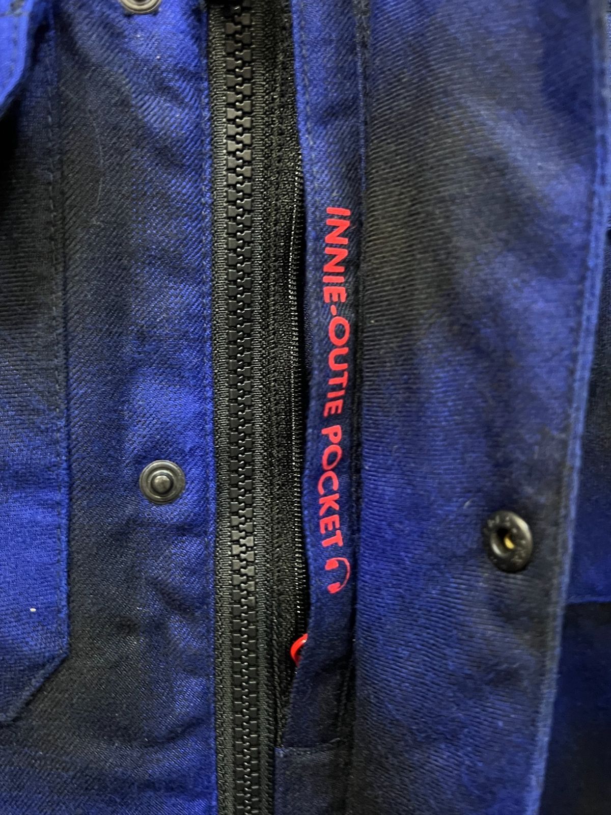 パーカーにネルシャツをレイヤーしたようなストリートファッション風スノボジャケット