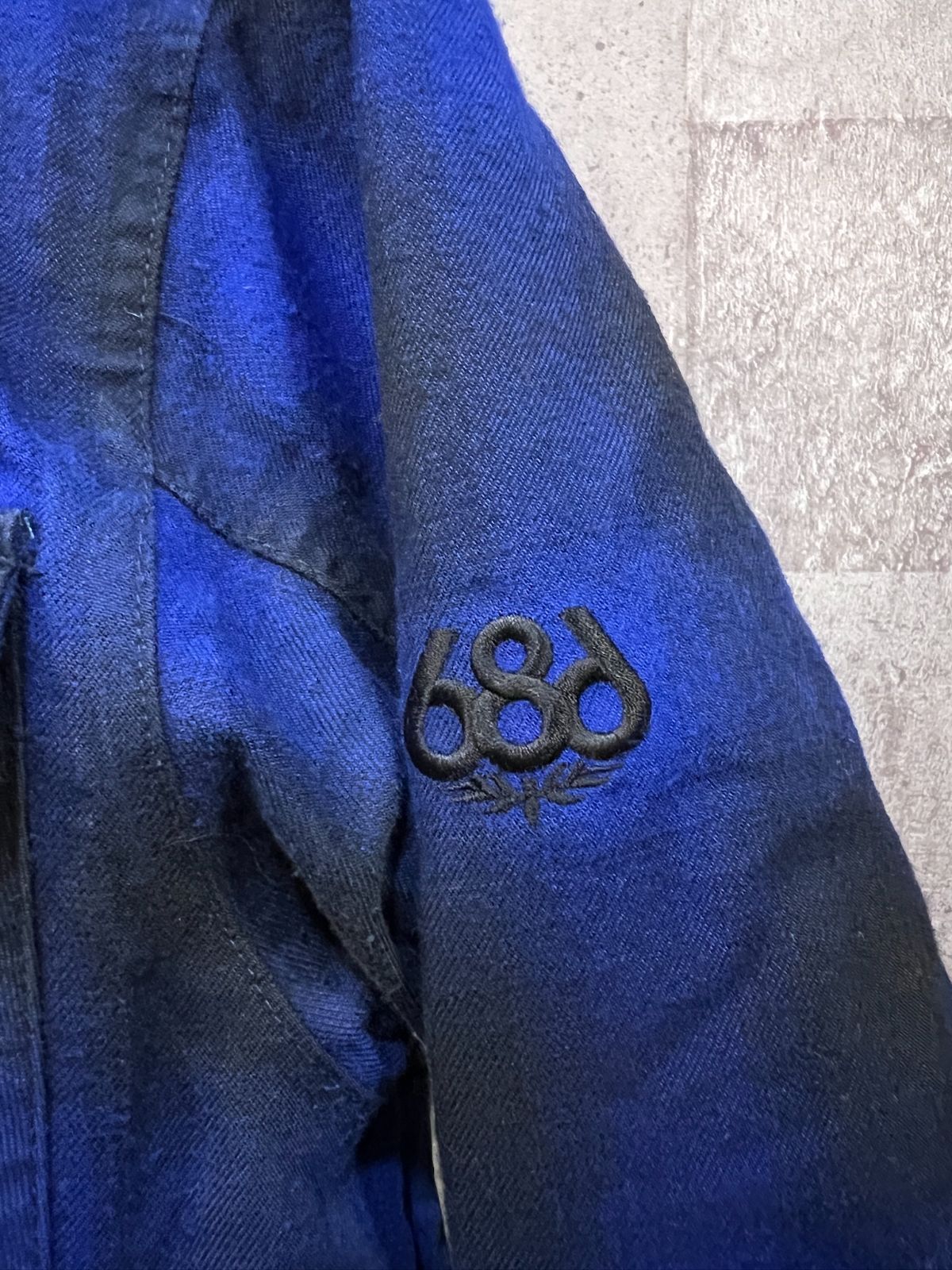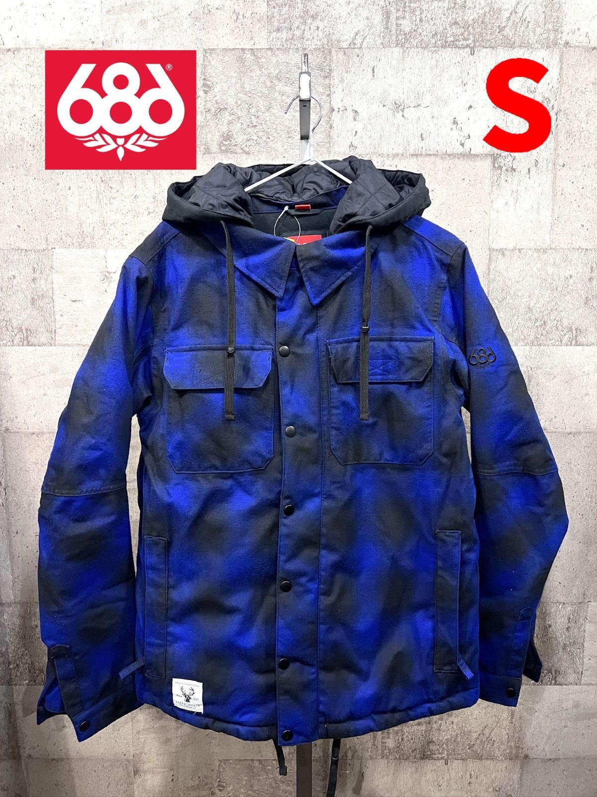 美品 686 オンブレチェック レイヤー風 スノボジャケット S メンズ スノーボード パーカー ネルシャツ風 SIXEIGHTSIX