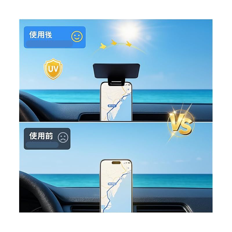 ?【日差しをカットして視認性アップ】直射日光の下でもスマホ画面が見づらくならない!このサンシェードは効果的に反射光やまぶしさをカットし、地図アプリや動画の視聴も快適。特に車内や屋外での使用に最適で、長時間の運転やキャンプ中の操作もストレスフリーです。