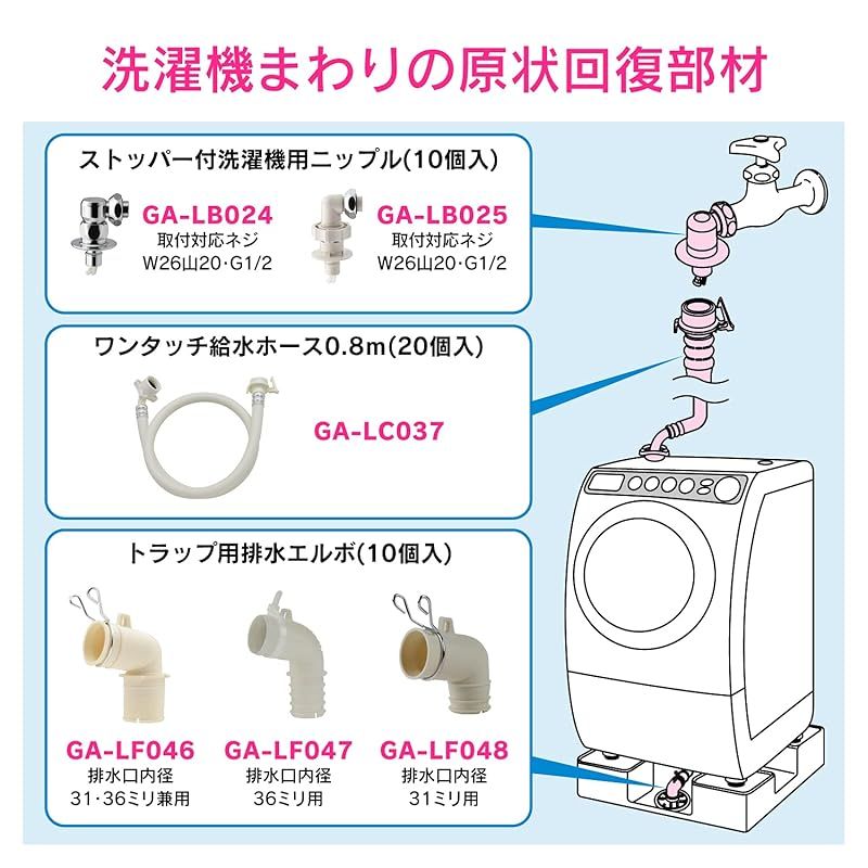 GAONA 洗濯機用給水ホース 0.8m 20個入 原状回復 GA-LC037 0