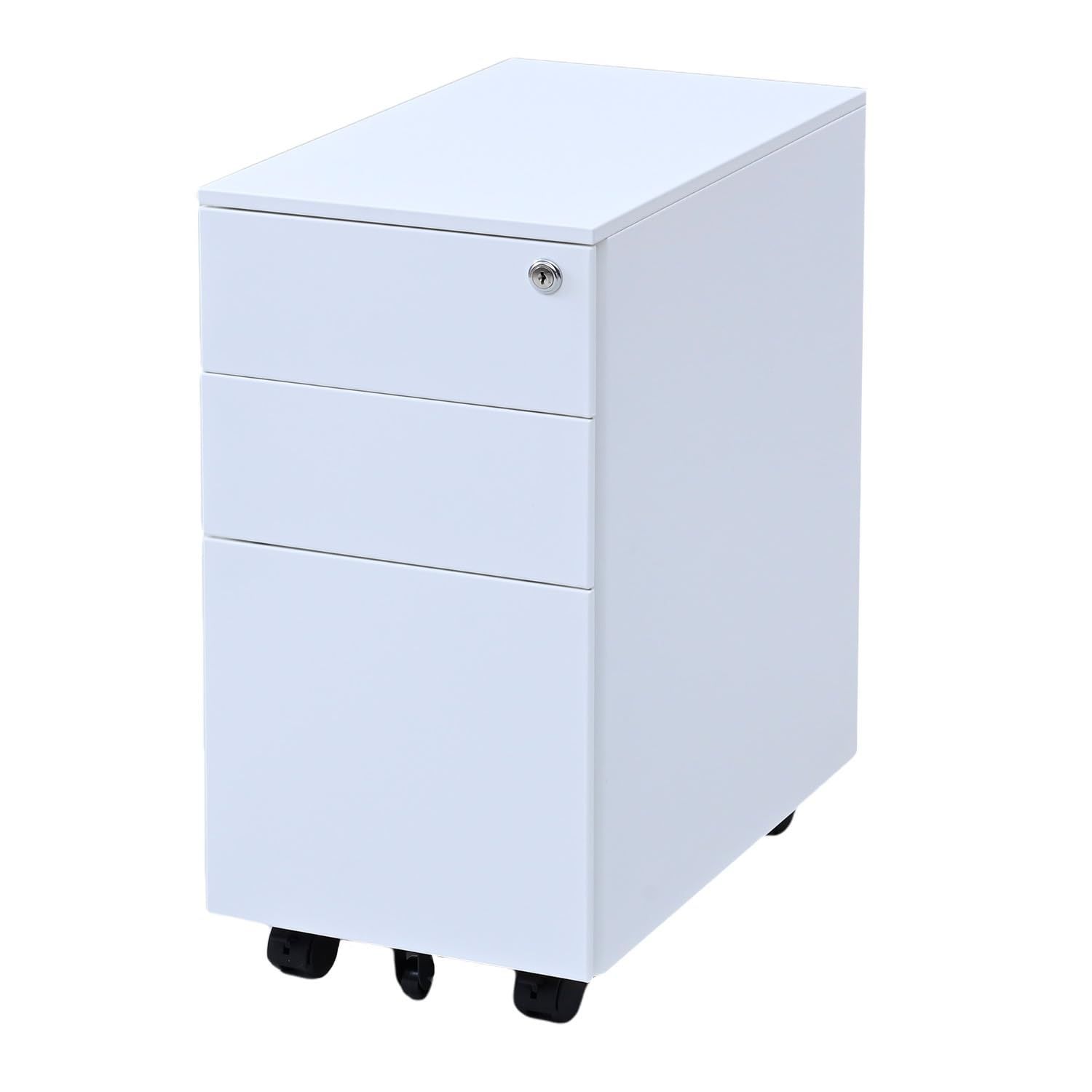 山善(YAMAZEN) ワゴン キャスター付き 3段 鍵付き キャビネット オールロック サイドワゴン デスクワゴン A4対応 収納 幅30×奥行50×高さ60cm 完成品 マットホワイト RKD-30(MWH)