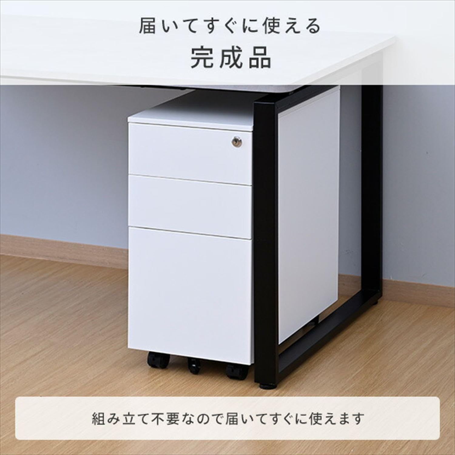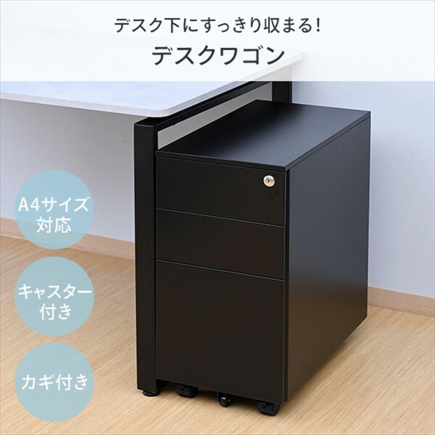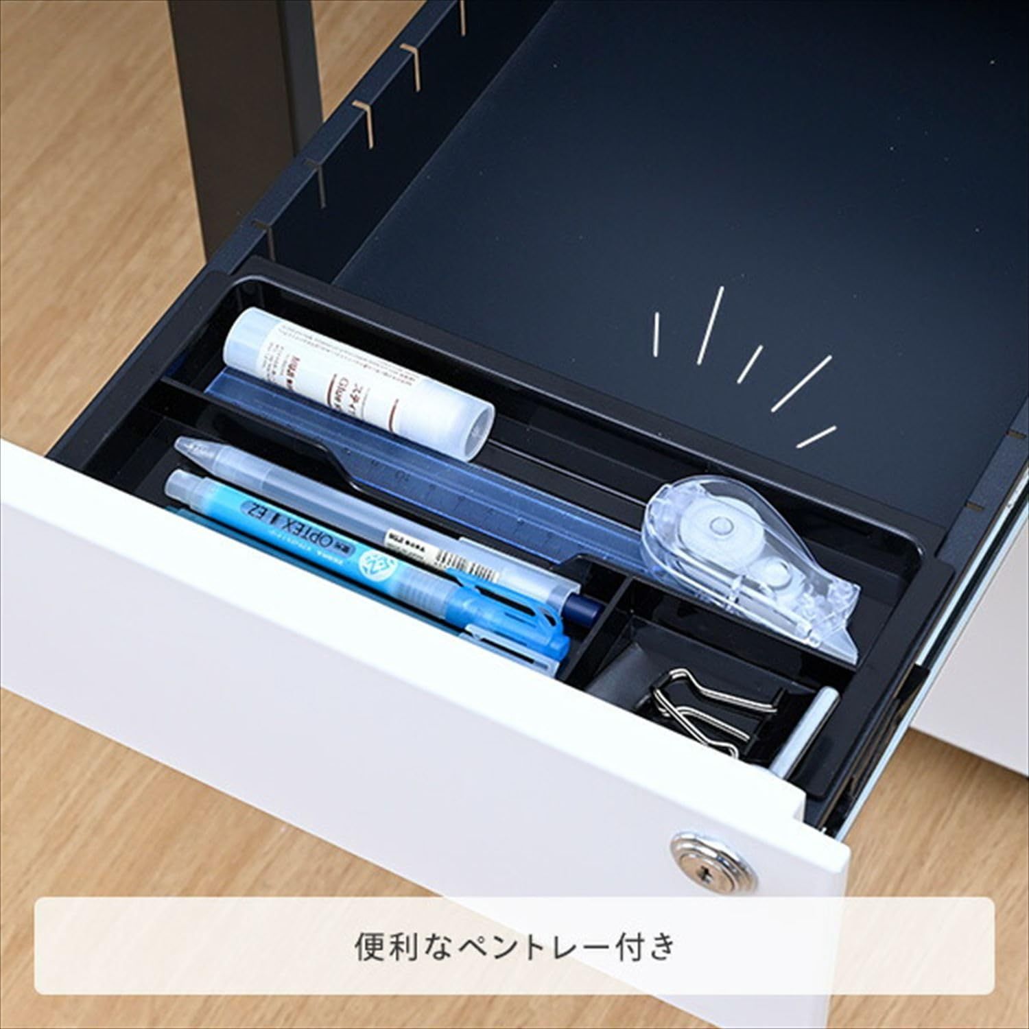 【キャスター付きキャビネット】デスク下や横に置いて使いやすい3段式のシンプルなキャビネットです。取り外し可能なペントレー1個と仕切り板1枚付きでデスクワークに必要な文房具や書類などの収納にぴったりです。