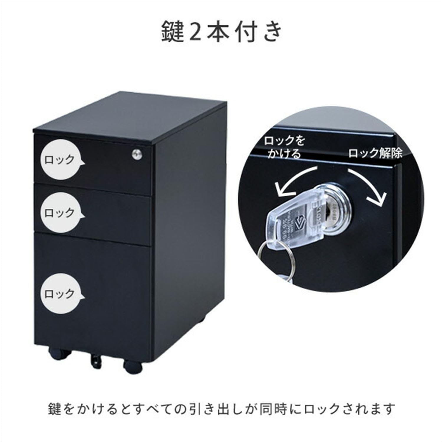 【オールロック式】鍵をかけると全ての引き出しが同時にロックされるので、セキュリティ対策にも。