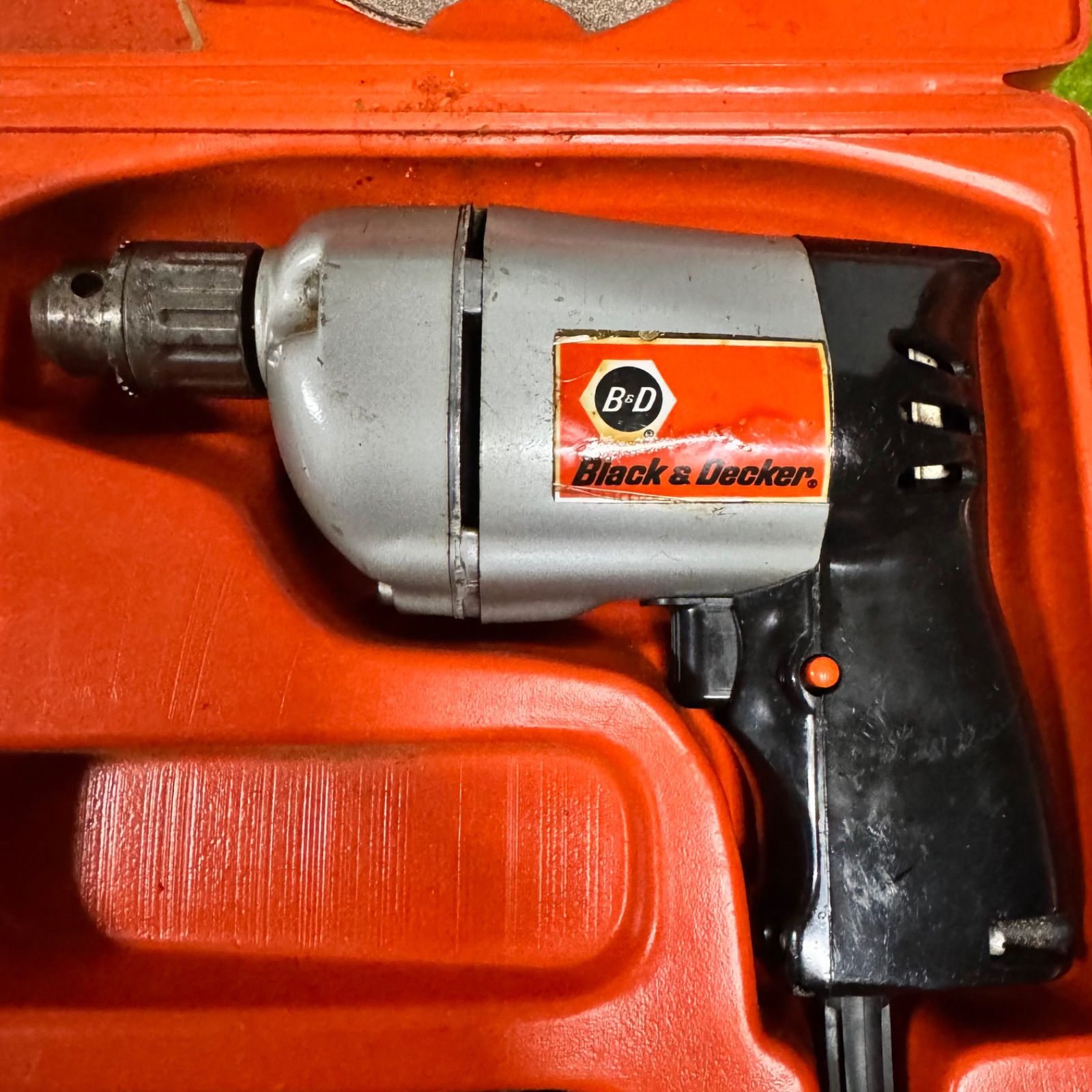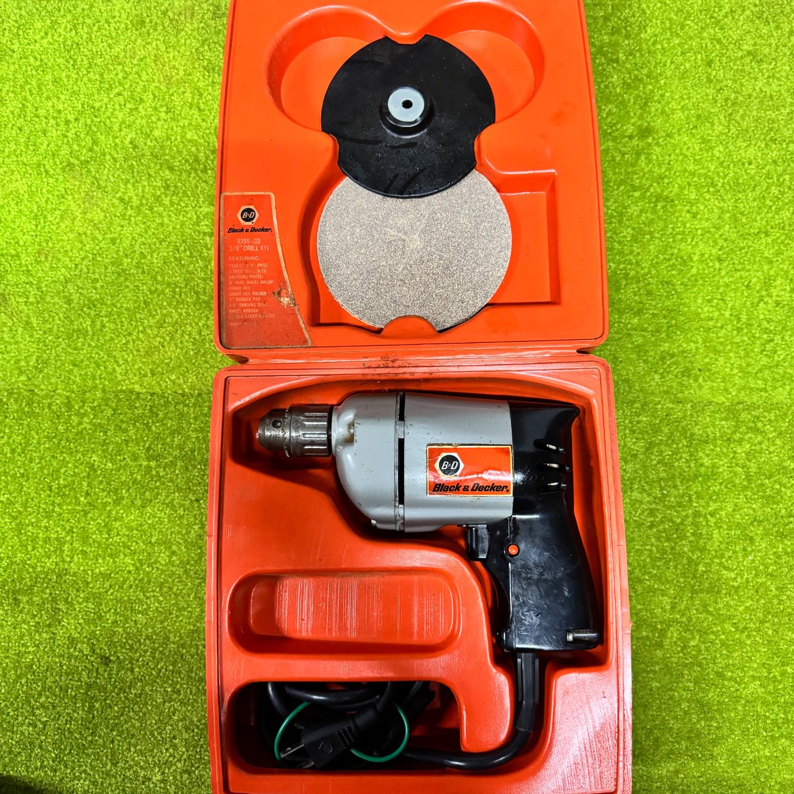 ヴィンテージ感のあるデザインと、当時の堅牢な作りが魅力的なBLACK&DECKER製の電気ドリルです。3/8インチ(約9.5mm)チャック仕様です。