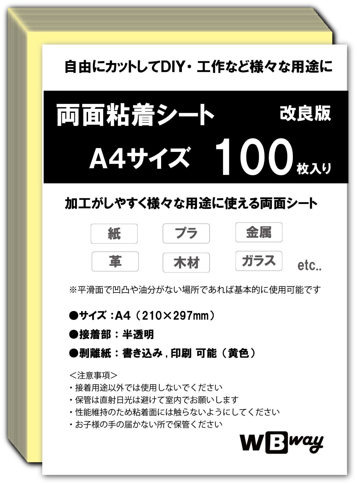 WBway 両面粘着シート A4 【100枚セット】 薄型 強粘着 シート状 サイズ297×210mm 両面接着シート 両面テープ シート 自作 多用途 半透明 シートタイプ (100枚入り)