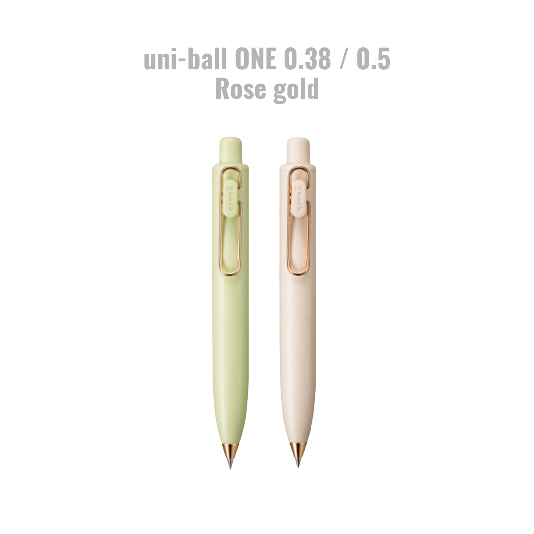 ローズゴールドのクリップとペン先が上品なデザインのゲルインクボールペンです。濃くはっきりとした文字が書ける「ユニボールワンインク」を搭載しており、日常の中で癒しを感じられる可愛らしいフォルムが特長です。