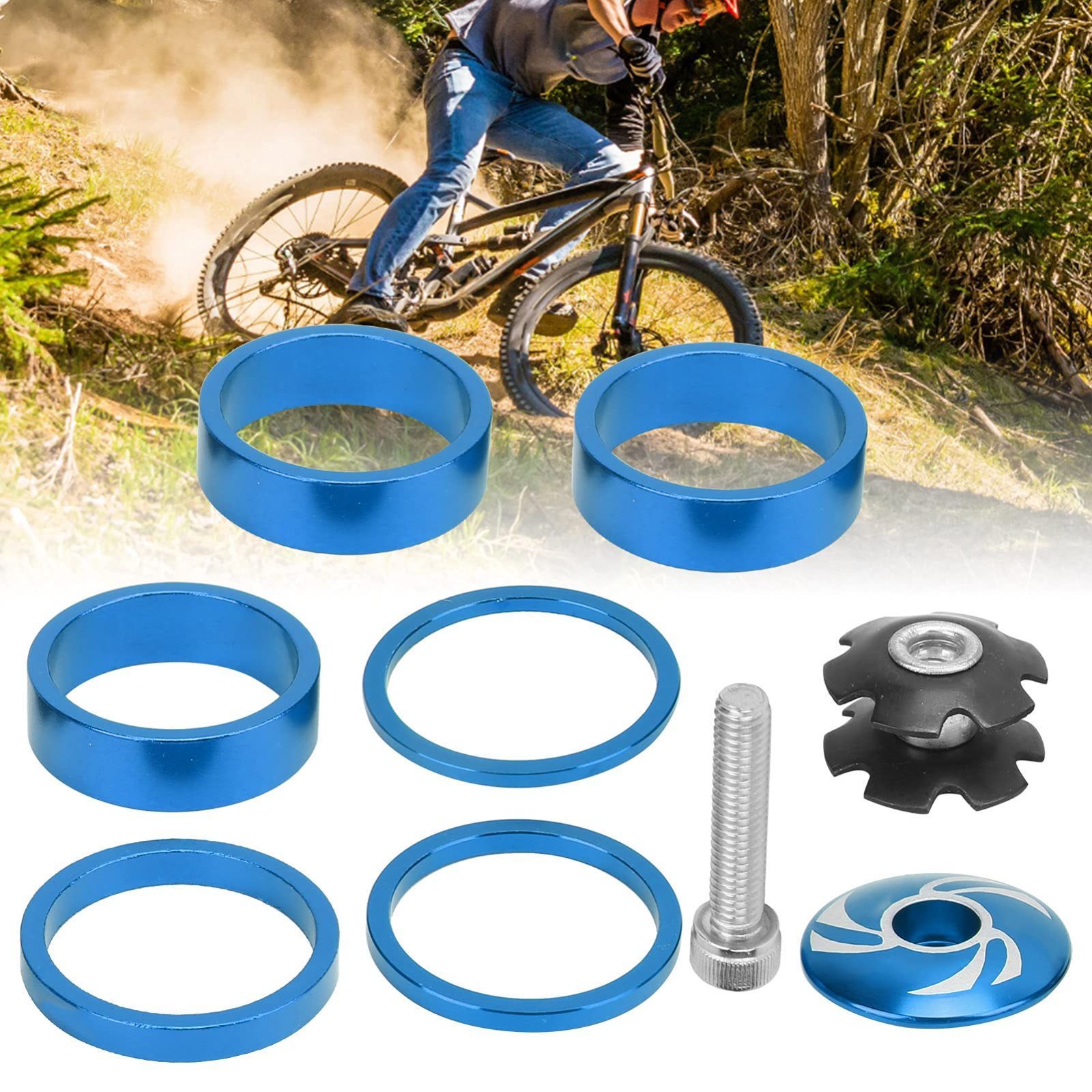【在庫処分】6個 自転車ハンドルバーステムスペーサー 自転車ヘッドセットスペーサー アルミ合金 自転車ハンドルバーステムスペーサー マウンテンバイク用 (青)