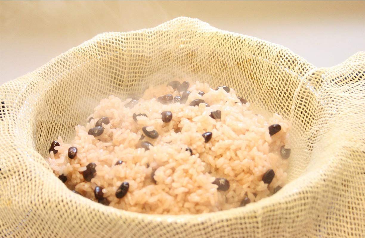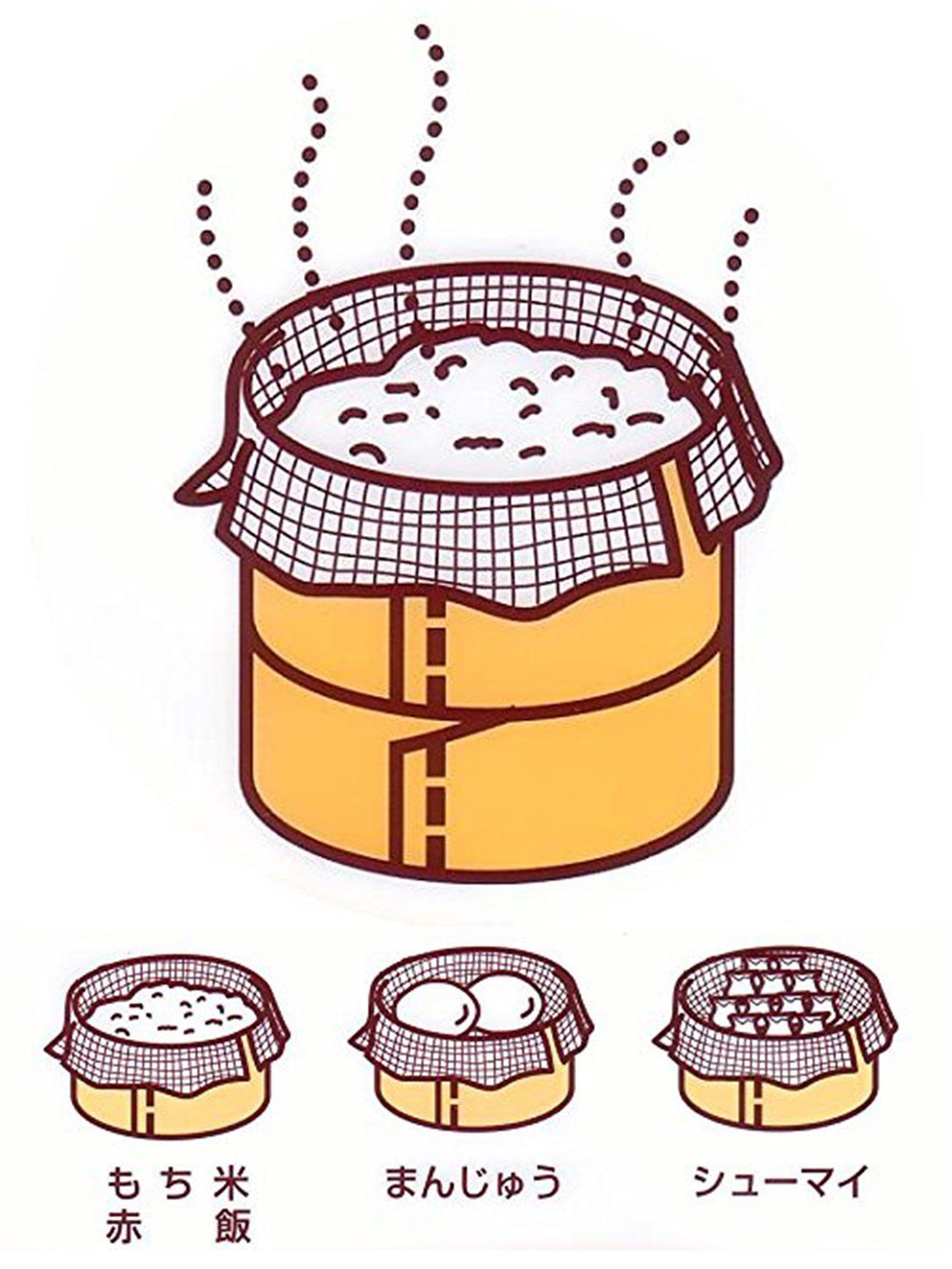 ●蒸し器やせいろに敷いて使用すると、食品が器にこびり付きにくく、布と一緒に取り出せて便利