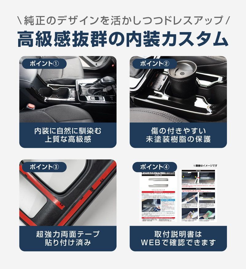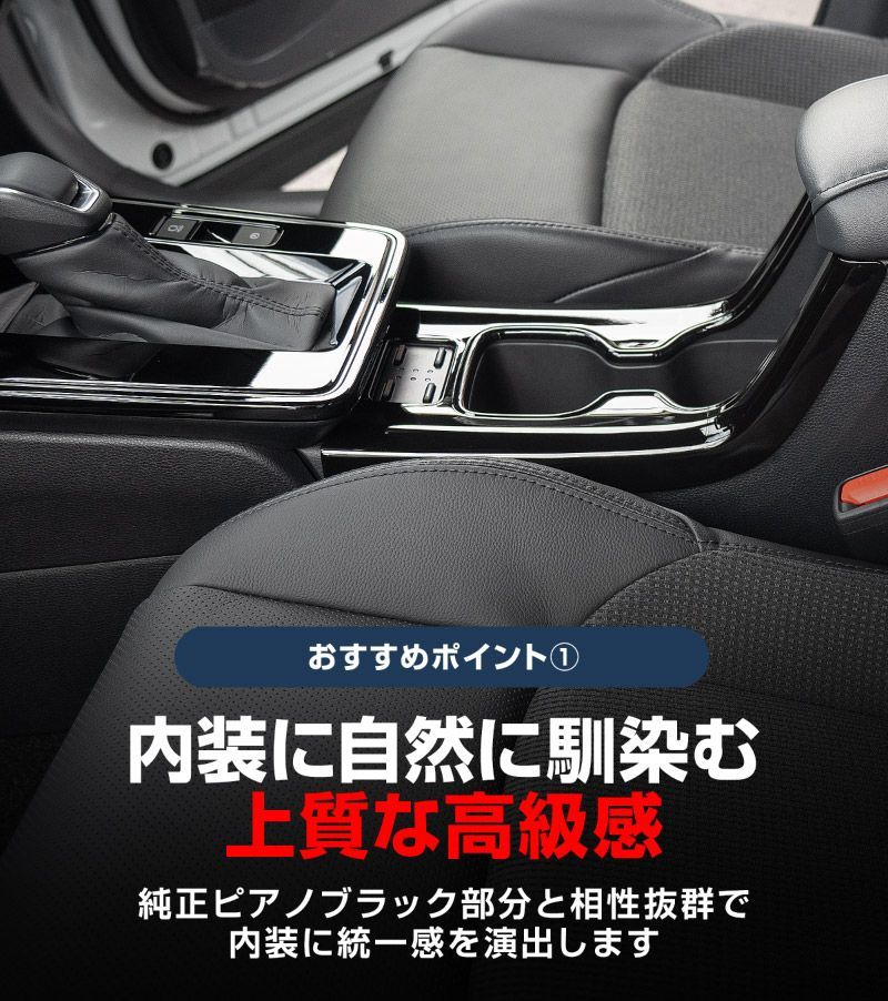 2025年5月マイナーチェンジ後モデル専用設計の新型カローラクロス フロントカップホルダー用ドレスアップパーツです。
