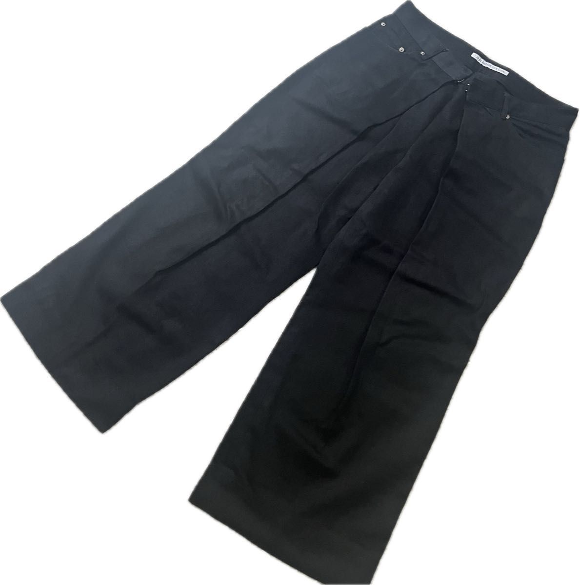 コットン ワイドパンツ ブラック ハイウエスト ゆったり L 48 メンズ
