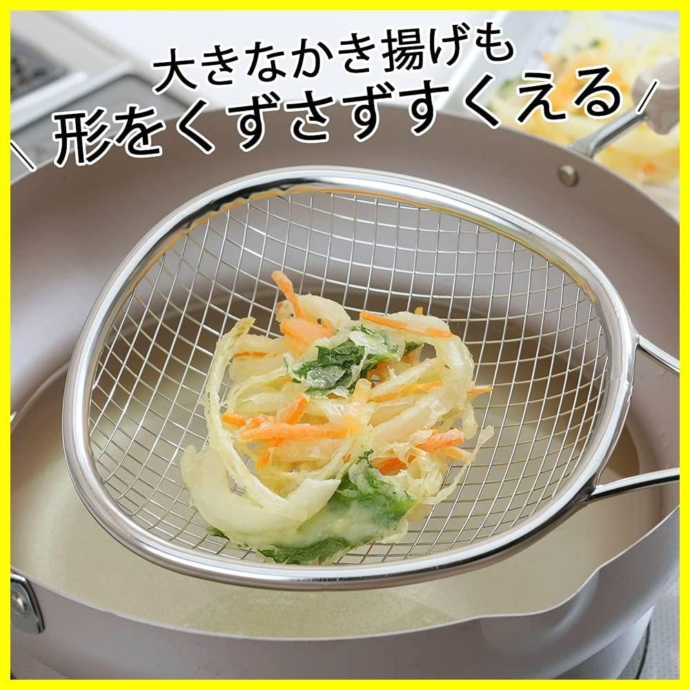 目の大きな特殊網を使用することで油切りが簡単にできる