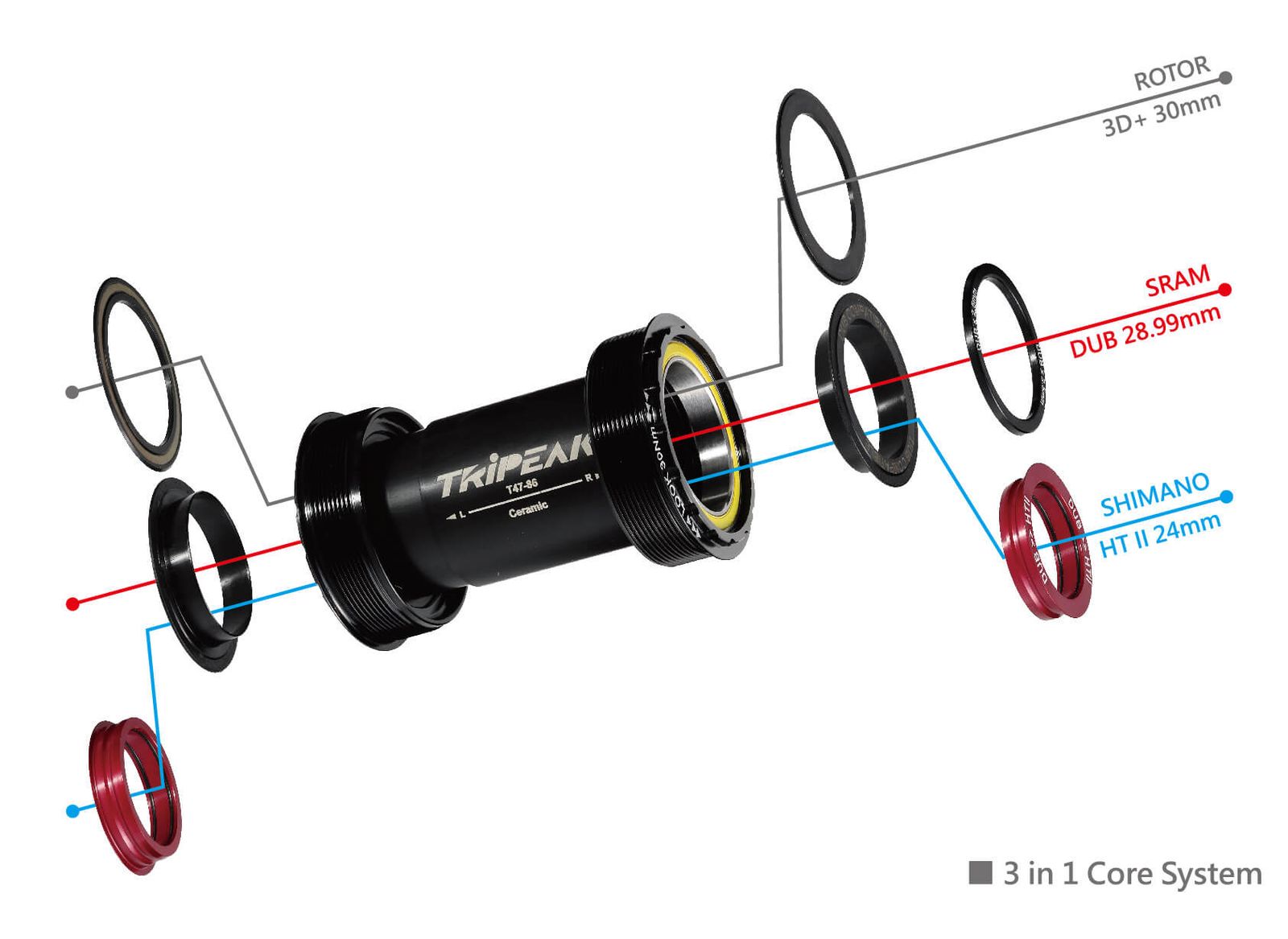 究極の回転効率でロードのポテンシャルを最大化するTRiPEAKボトムブラケット。高精度セラミック・スチールハイブリッドベアリングを採用し、ペダリング時の抵抗を極限まで低減。踏み出しの軽さと伸びるような加速感を実現します。
