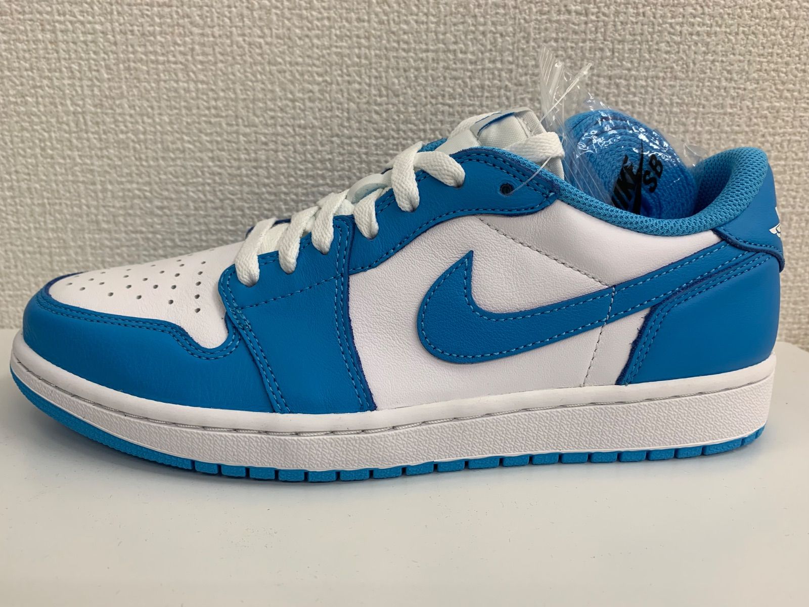 青と白の配色が特徴のNike Air Jordan 1 Lowスニーカー