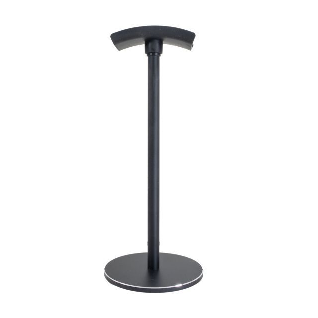 製品の特長:金属製で適度な重量があり、安定して置ける。ヘッドホンを載せる部分はシリコン製なので、ヘッドホンへのダメージを最小限に留めます。