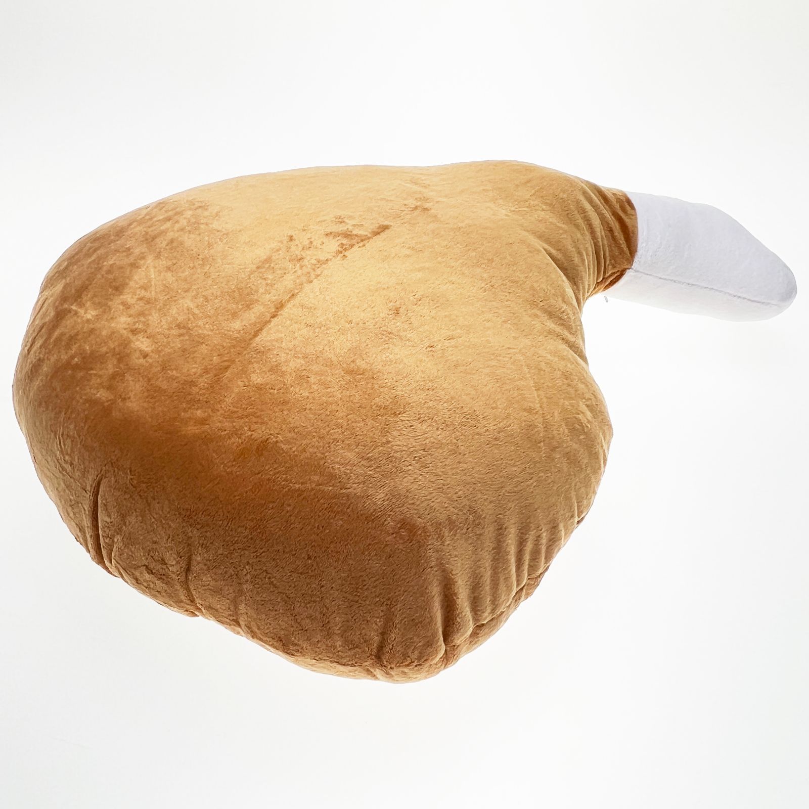 こんがり焼けた鶏もも肉(チキンレッグ)を忠実に再現した、インパクト大のぬいぐるみ(クッション)です。ふわふわで柔らかい手触りで、抱き心地は抜群!