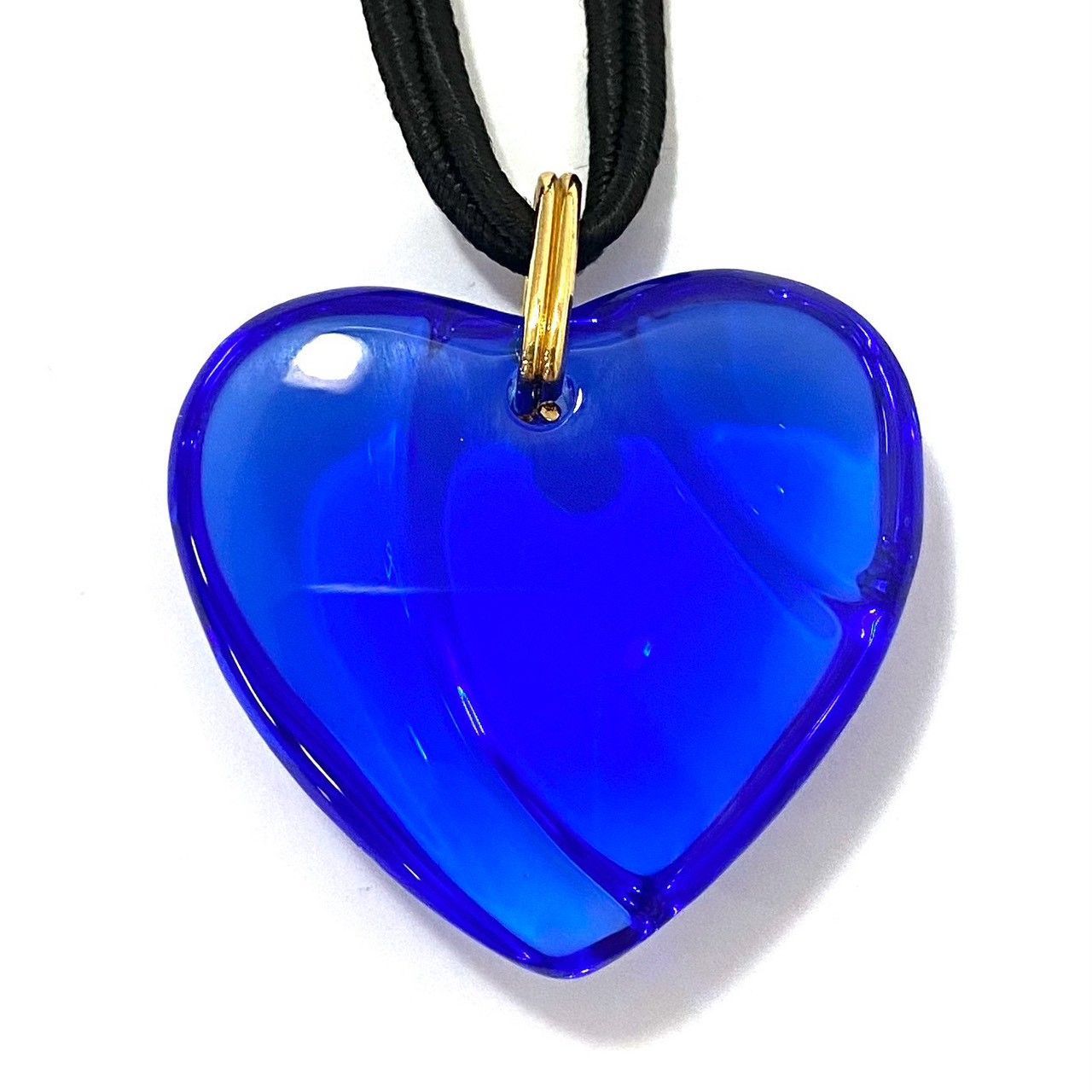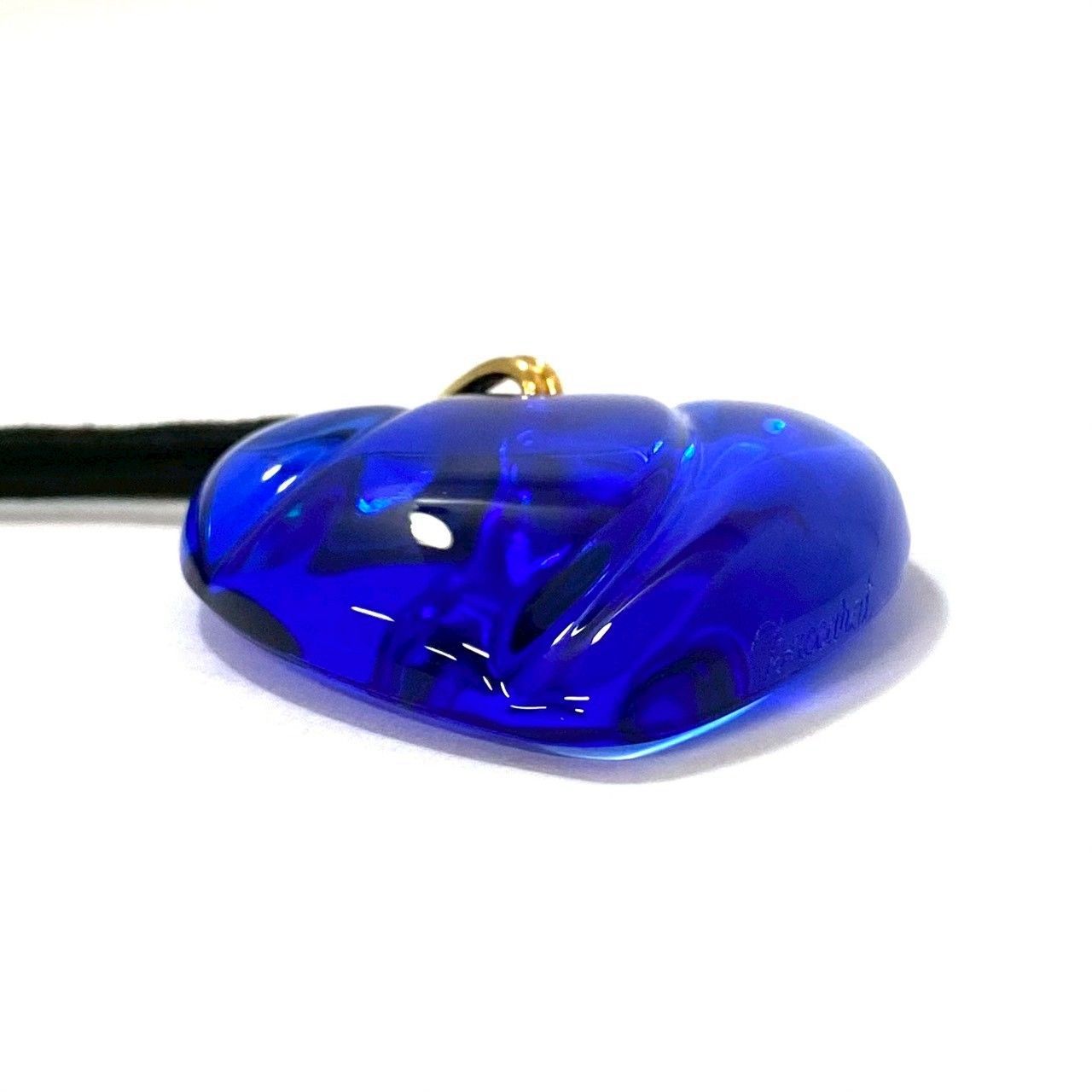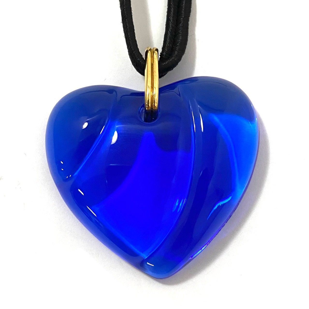 M【Baccarat】ハート クリスタル ペンダント ブルー/青 ガラス ネックレス バカラ (62194H1)