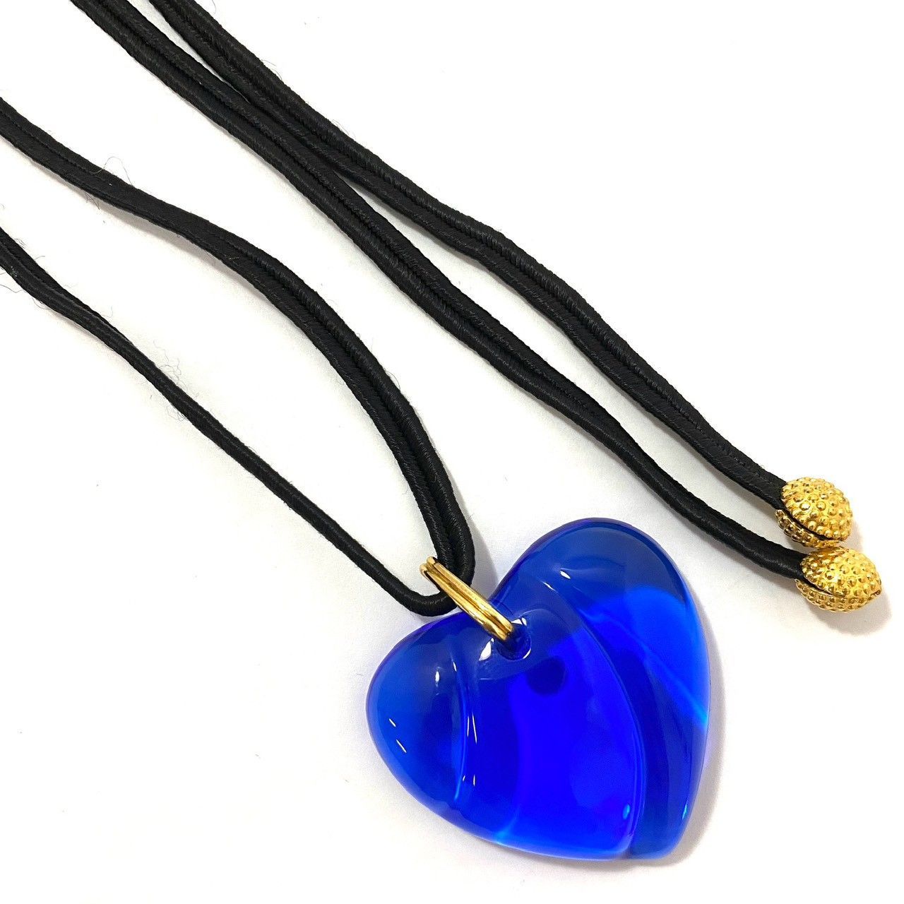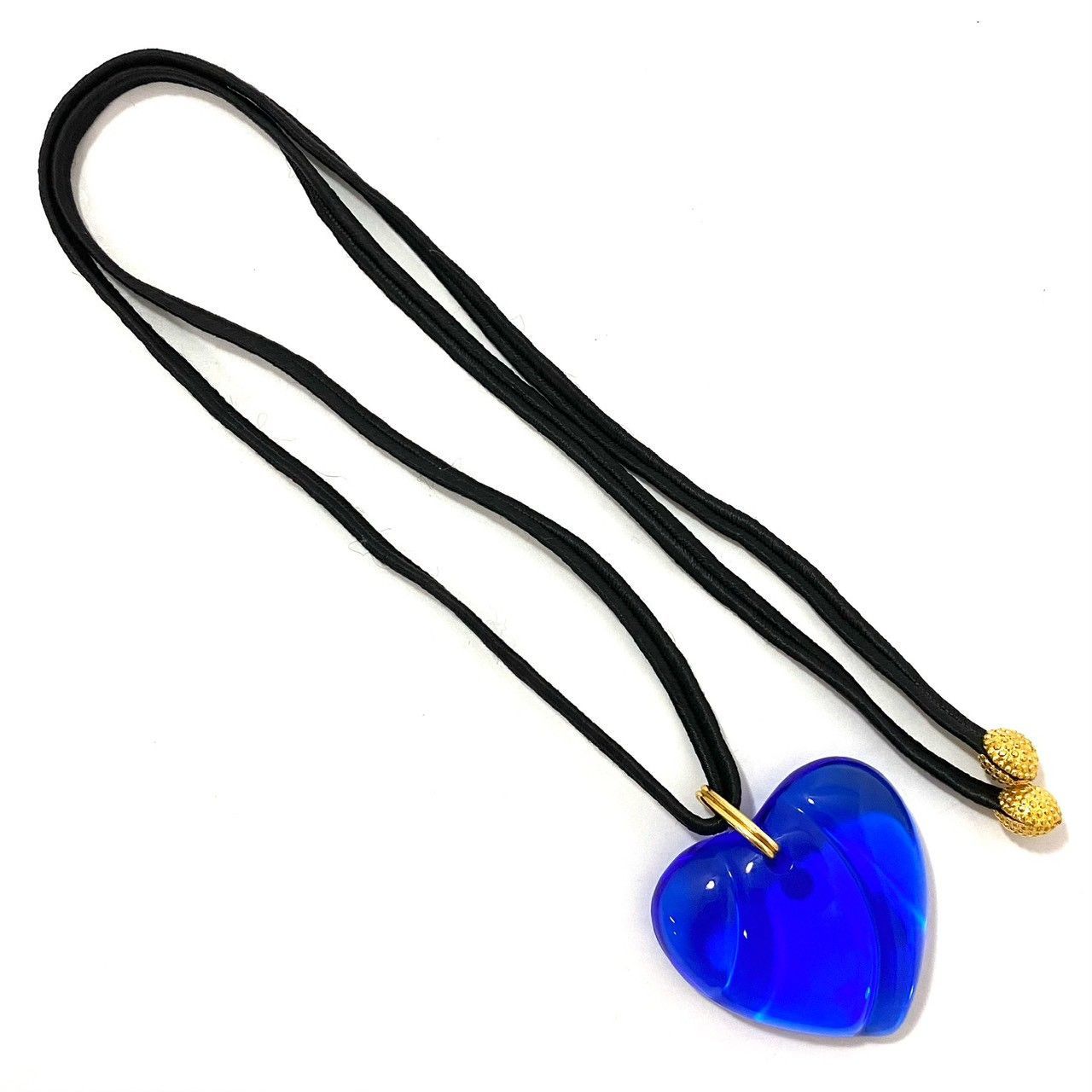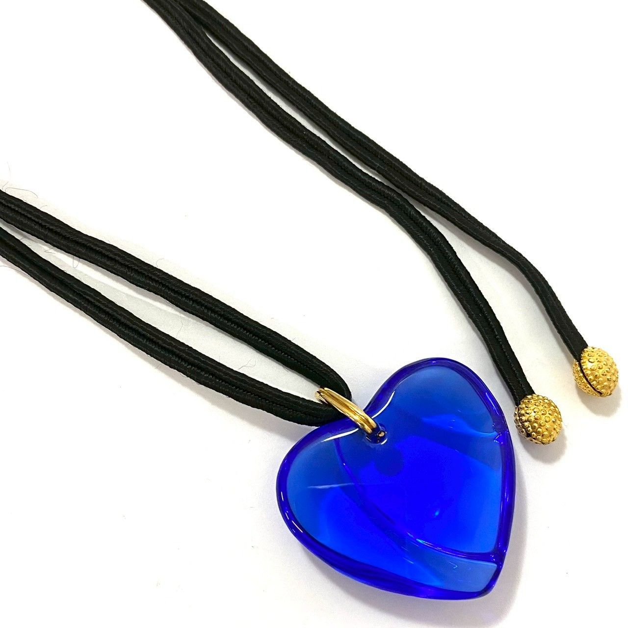 M【Baccarat】ハート クリスタル ペンダント ブルー/青 ガラス ネックレス バカラ (62194H1)