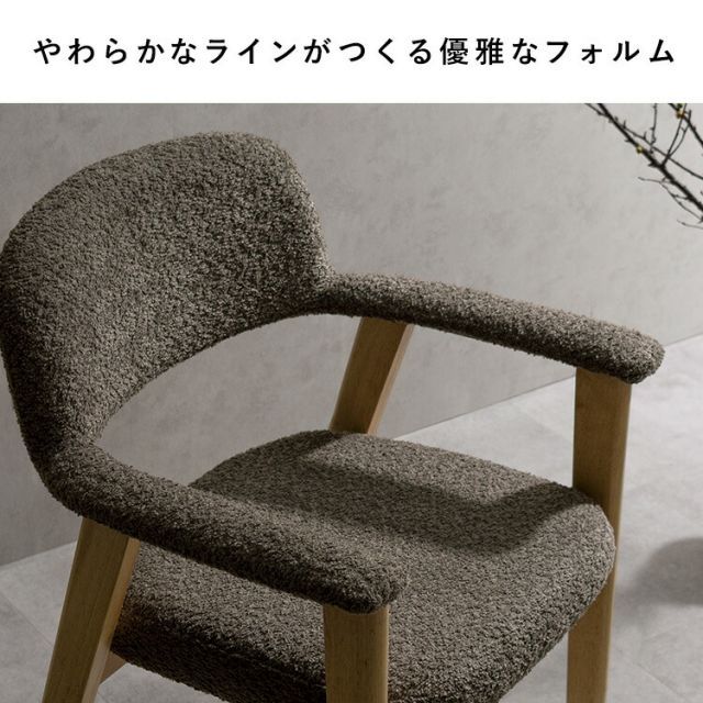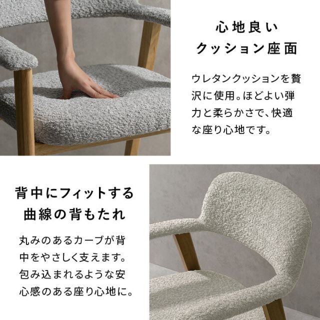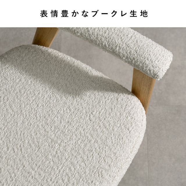 ダイニングチェアもこもこ椅子ブークレ生地座面高さ45cm幅58cm奥行54cm高さ77cmファブリックチェア肘掛け付き天然木の脚ラバーウッド韓国風カフェ風食卓椅子おしゃれ北欧風リビングチェア木製オフホワイト白グレーブラウンおうちカフェ1脚単品インテリア家具いすイスチェアー背もたれ付き肘付きダイニング用椅子食卓用椅子カフェチェアインテリアチェアお洒落な椅子アームチェアファブリックチェアデスクチェアパソコンチェア作業用椅子在宅勤務リモートワークテレワーク固定脚新生活一人暮らしワンルームダイニングリビング居間女子部屋オフィス店舗サロン飲食店シンプルモダンナチュラル北欧モダン韓国インテリア韓国っぽやわらかブークレー生地快適くつろぎリラックス丸みのある背もたれ包み込む椅子座り心地がいい疲れにくい木目くすみカラー