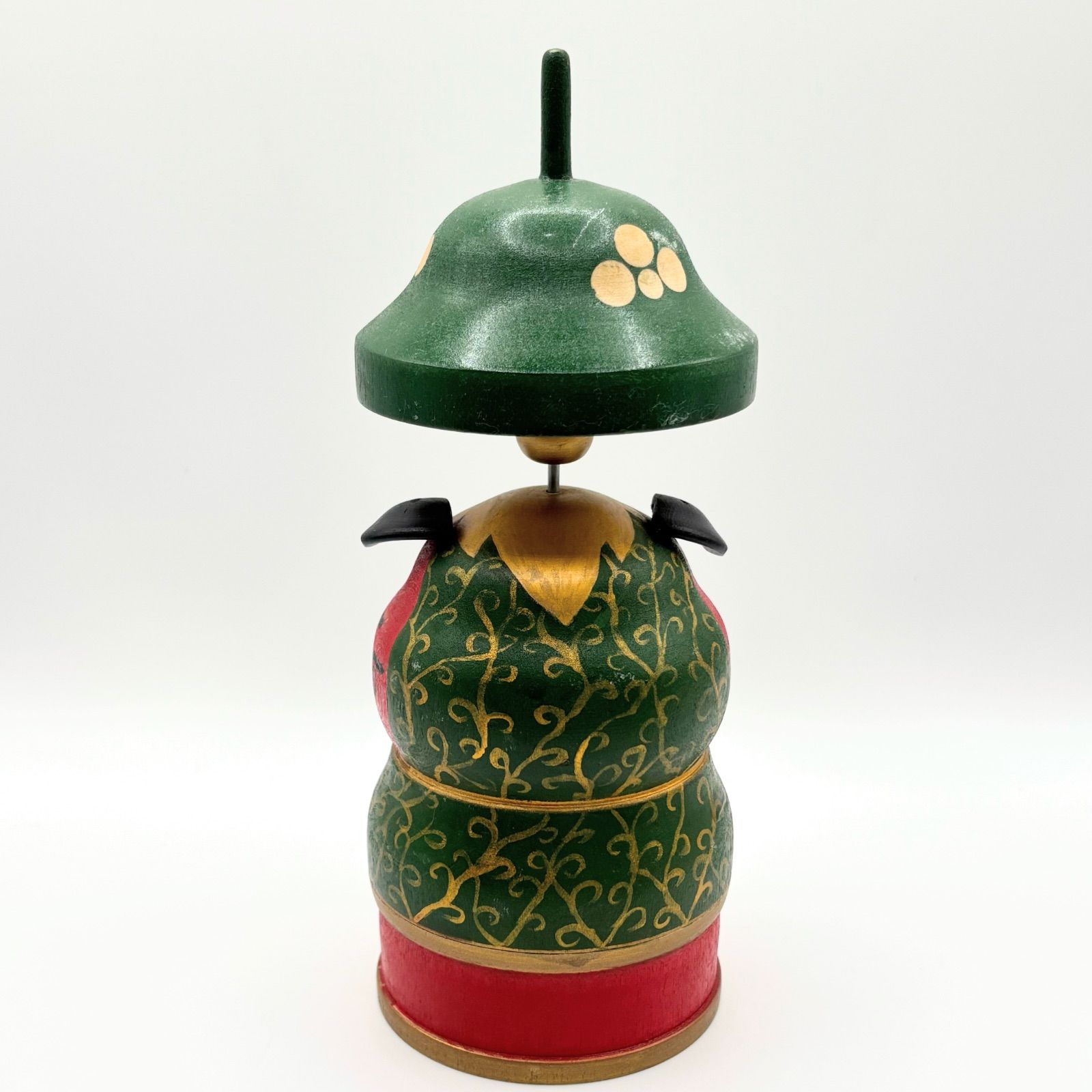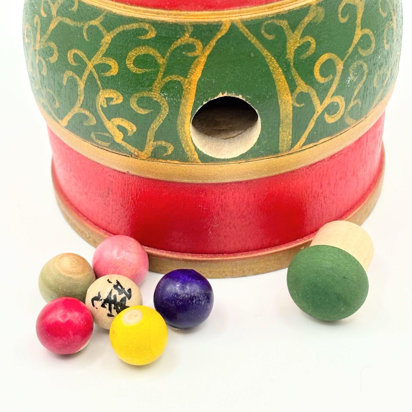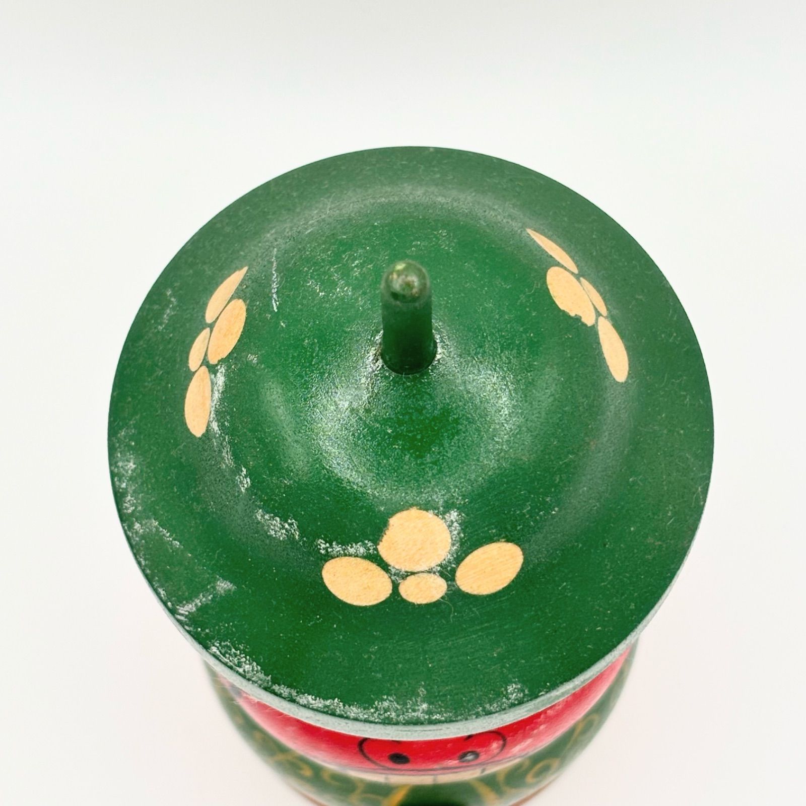 色玉を入れて独楽を回すと、腹部の穴から出てきます。