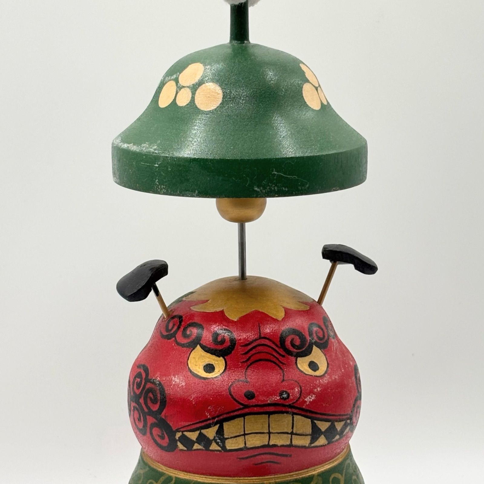 独楽を持ち上げると、獅子舞の耳も一緒に動きます。