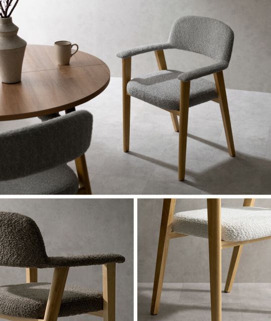 同色2脚セットダイニングチェアもこもこ椅子ブークレ生地座面高さ45cm幅58cm奥行54cm高さ77cmファブリックチェア肘掛け付き天然木の脚ラバーウッド韓国風カフェ風食卓椅子おしゃれ北欧風リビングチェア木製オフホワイト白グレーブラウンおうちカフェインテリア家具いすイスチェアー背もたれ付き肘付きダイニング用椅子食卓用椅子カフェチェアインテリアチェアお洒落な椅子アームチェアファブリックチェアデスクチェアパソコンチェア作業用椅子在宅勤務リモートワークテレワーク固定脚新生活一人暮らしワンルームダイニングリビング居間女子部屋オフィス店舗サロン飲食店シンプルモダンナチュラル北欧モダン韓国インテリア韓国っぽやわらかブークレー生地快適くつろぎリラックス丸みのある背もたれ包み込む椅子座り心地がいい疲れにくい木目くすみカラー