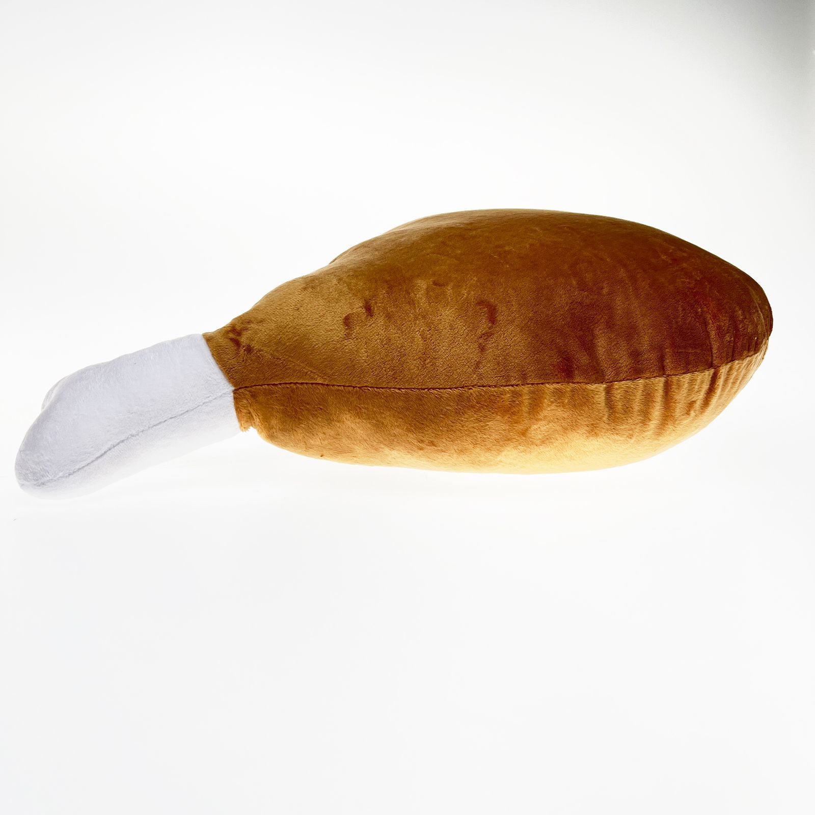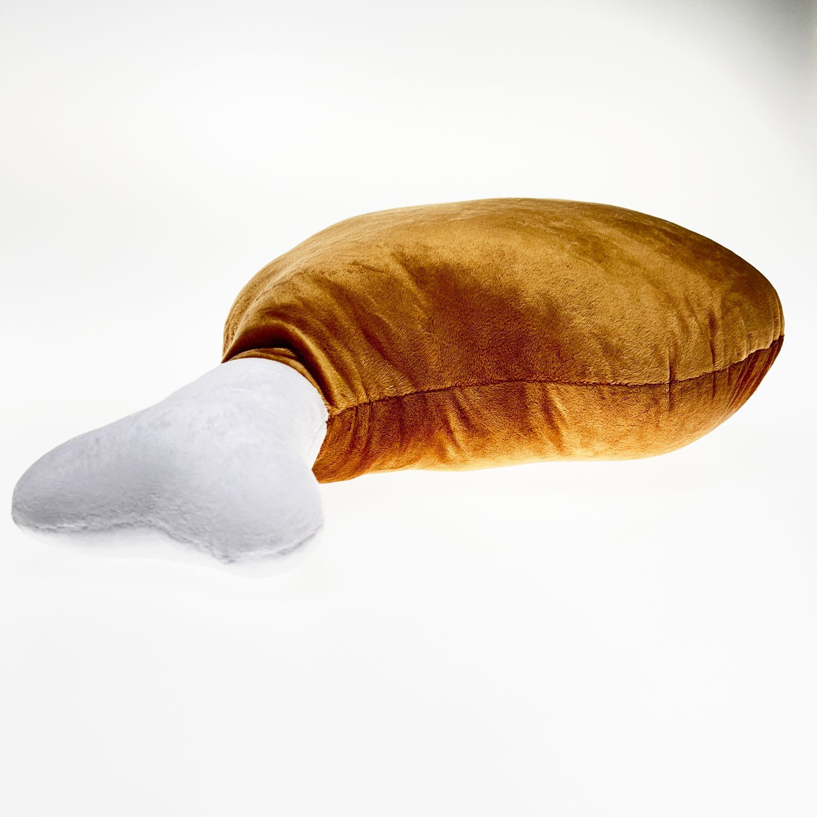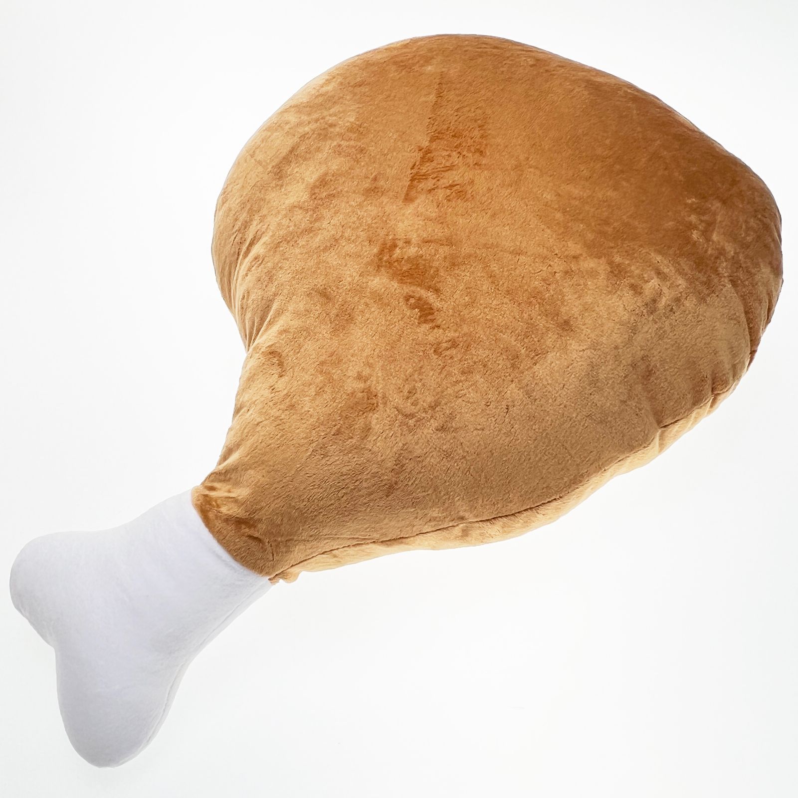 こんがり焼けた鶏もも肉(チキンレッグ)を忠実に再現した、インパクト大のぬいぐるみ(クッション)です。ふわふわで柔らかい手触りで、抱き心地は抜群!