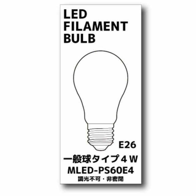 LED フィラメント電球 ボール球型 4W PS60型 E26