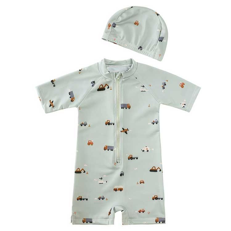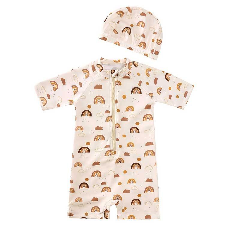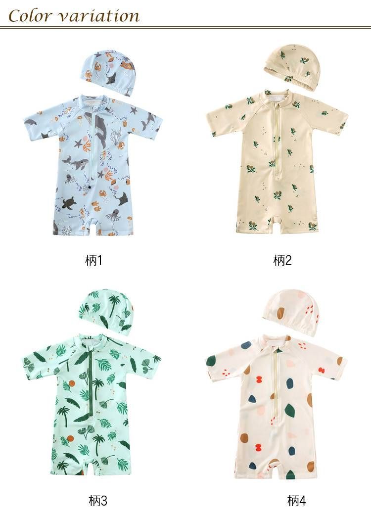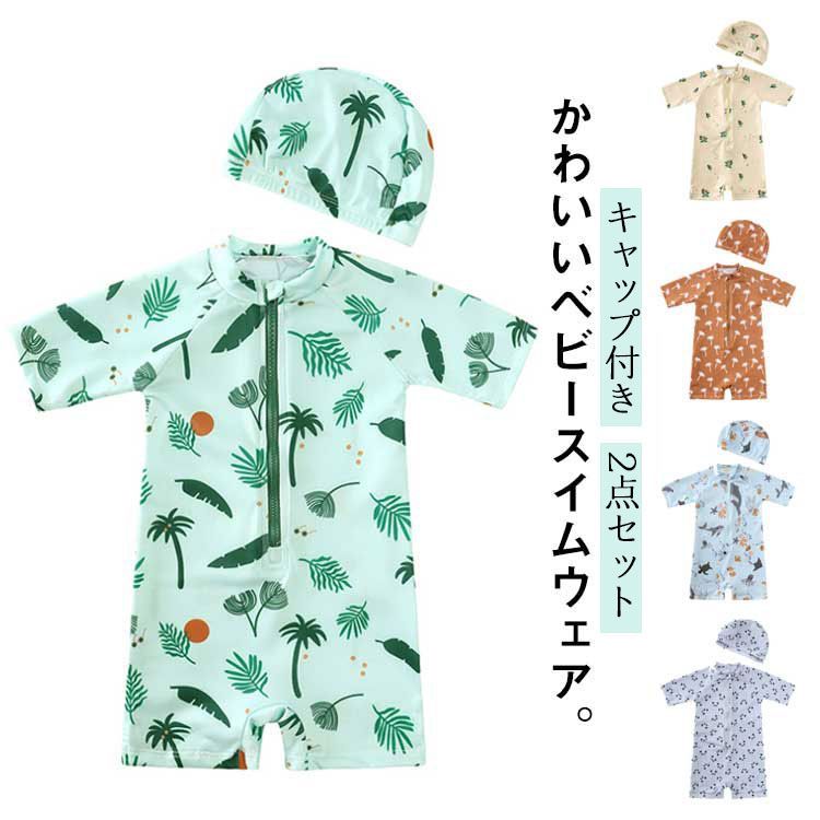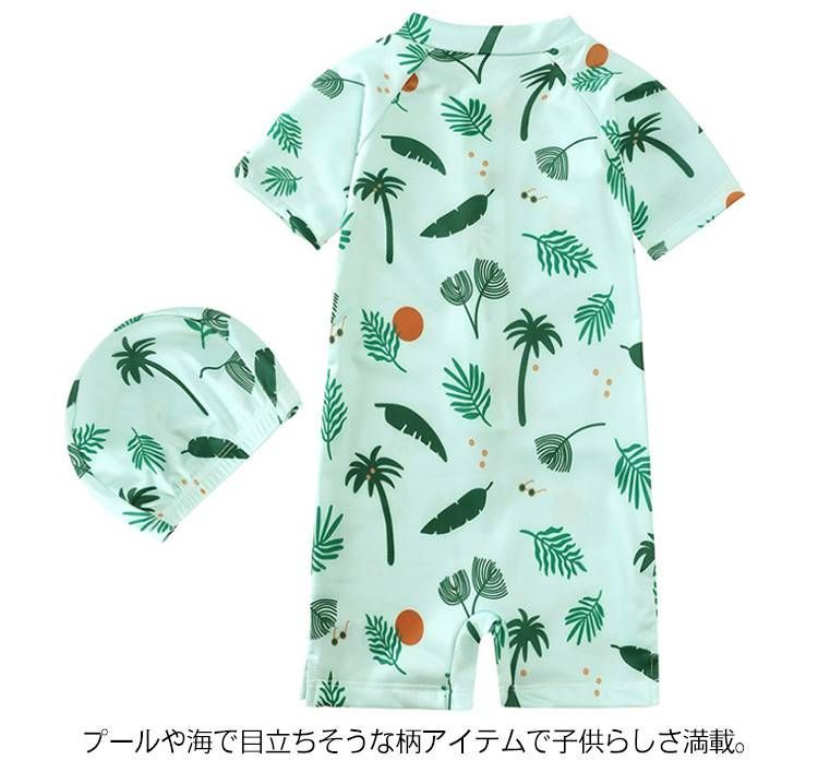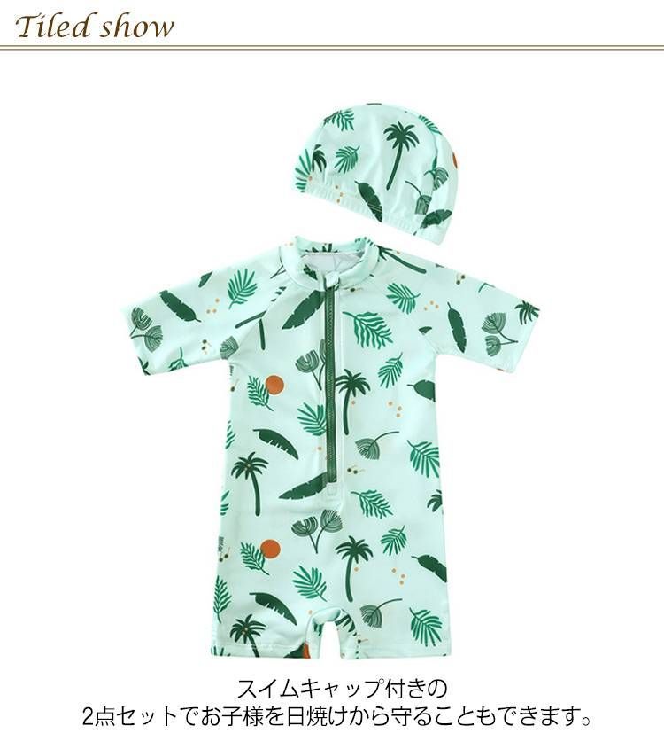 スイムキャップ付きの2点セットでお子様を日焼けから守ることもできます。