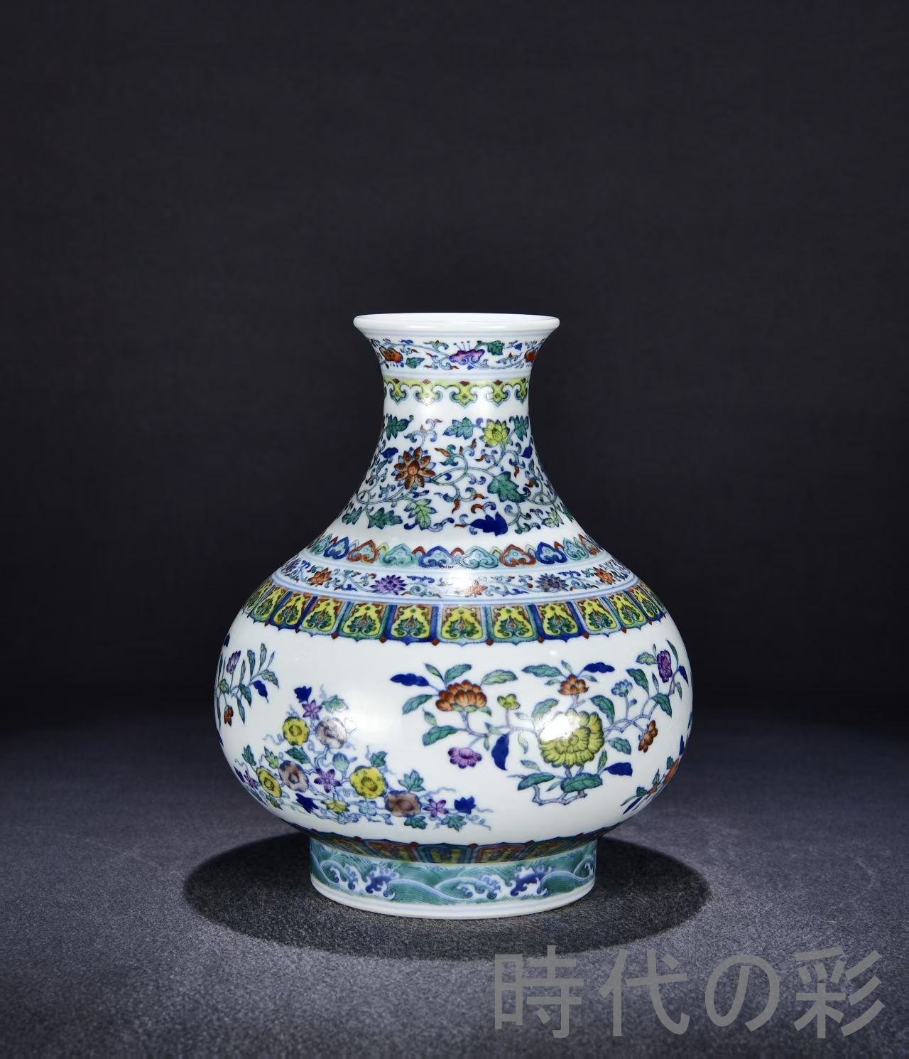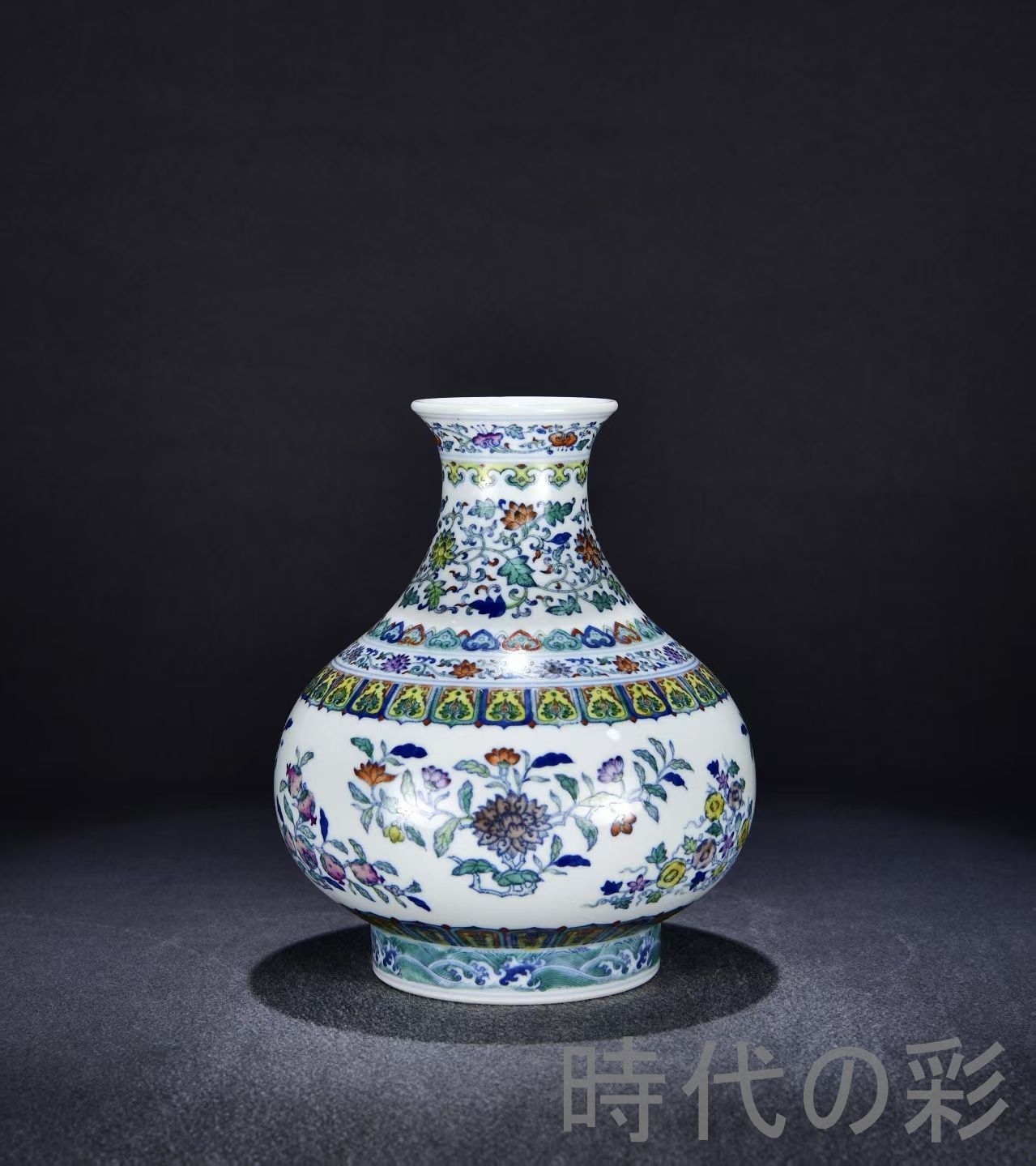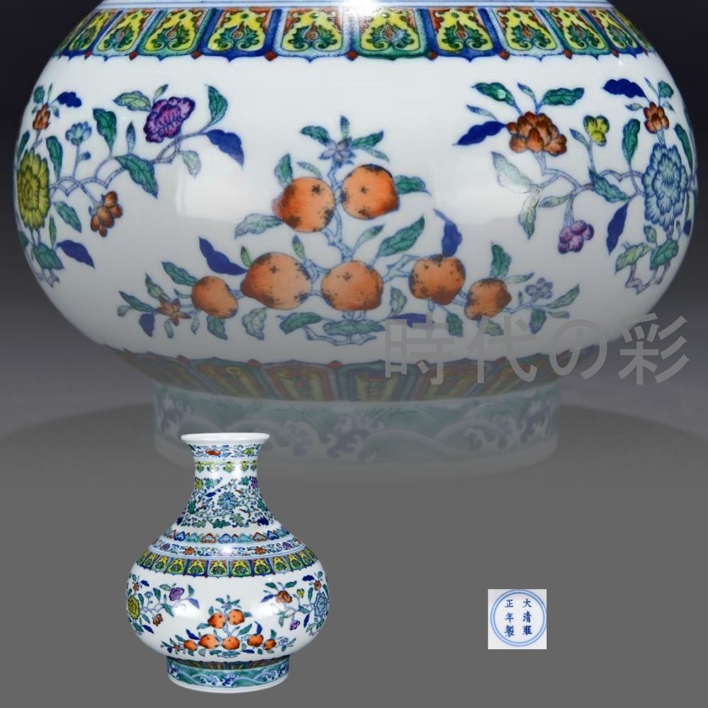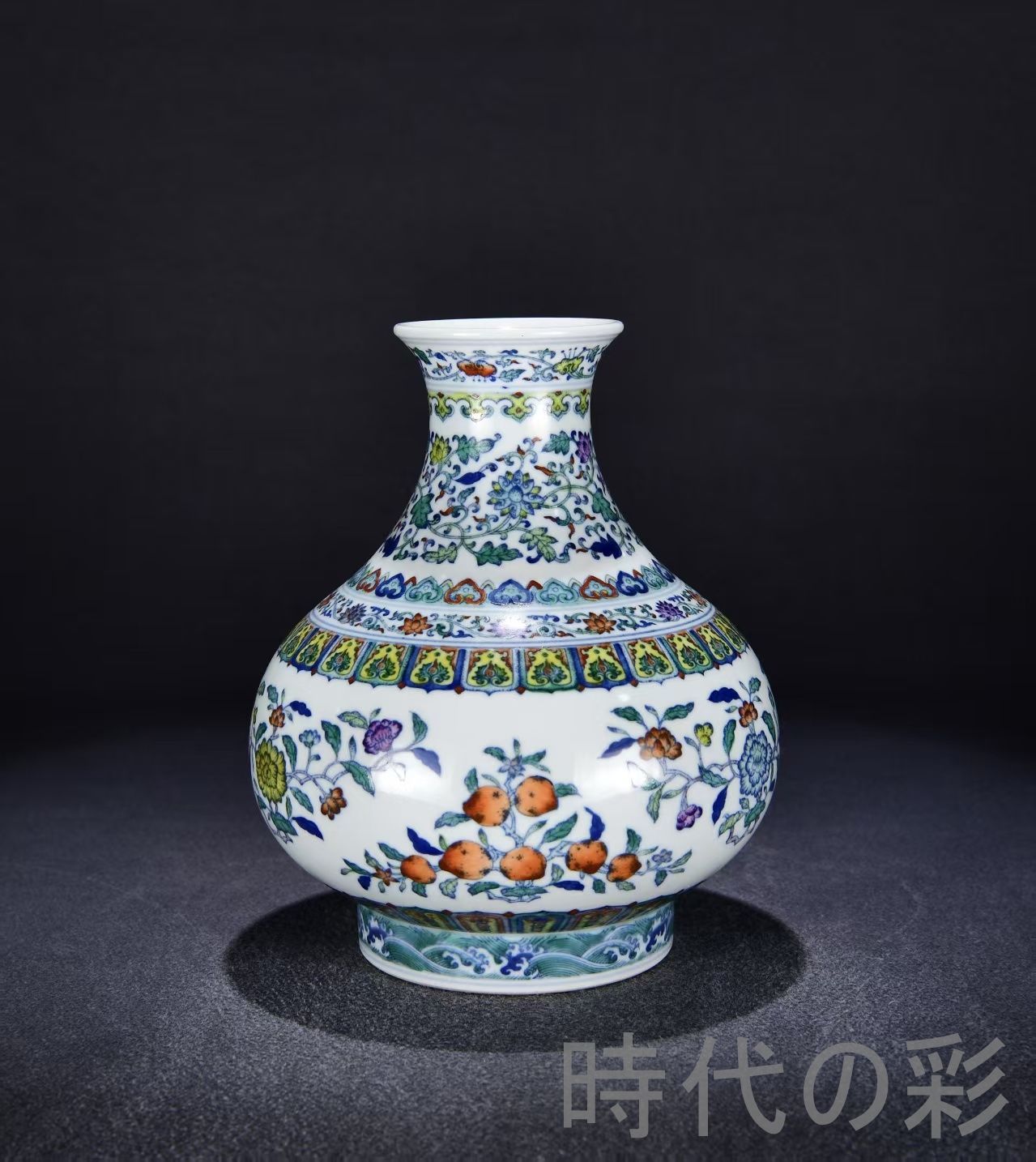 清代雍正,斗彩,折枝花果紋,玉壺春瓶,景徳鎮,陶磁器,骨董品,工芸品,中国古美術