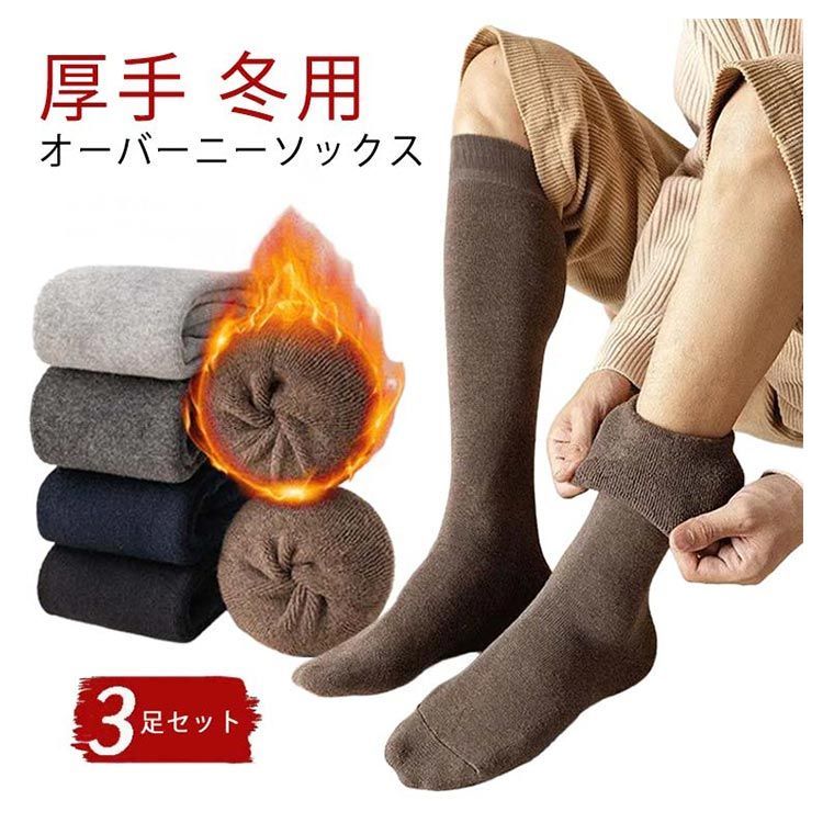 3足セット オーバーニーソックス 保温 裏起毛 靴下 厚手 冬用 ロングソックス 送料無料 メンズ ビジネス スポーツ 寒さ対策 防寒 ハイソックス 暖かい あったか靴下 冬用 厚地 男性 通勤 通#dongdong13564