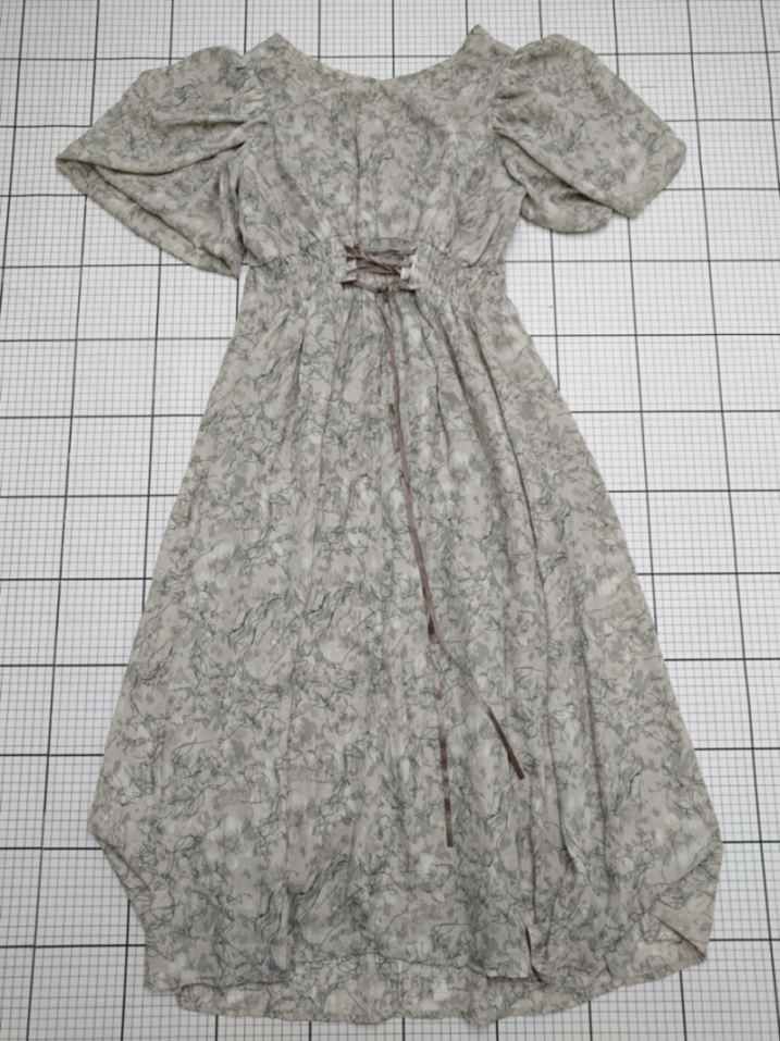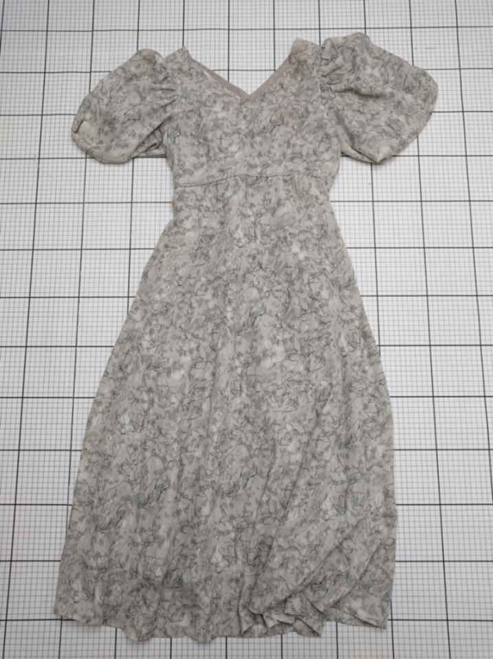 デザイン: 0 【グレイル GRL】花柄パフスリーブワンピース Mサイズ ベージュ系 ロング丈 1508260039536