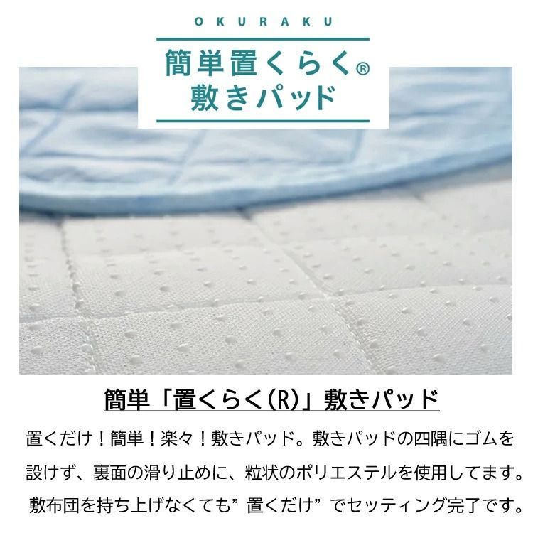 keyword:西川 敷きパッド 敷パッド パッドシーツ ベッドパッド ゴムなし 滑り止め 綿100% 洗える 吸湿発散 通年使える 敷き布団 マットレス おくらく OK3002 中国製