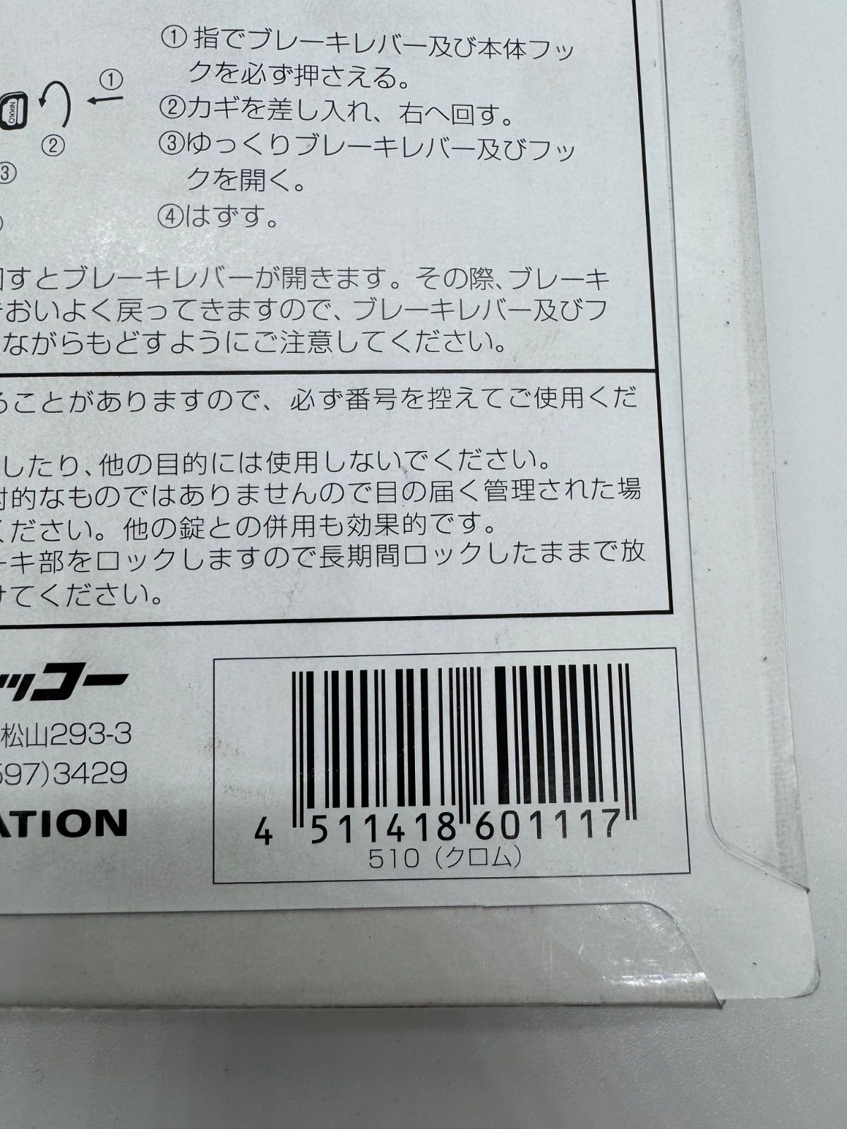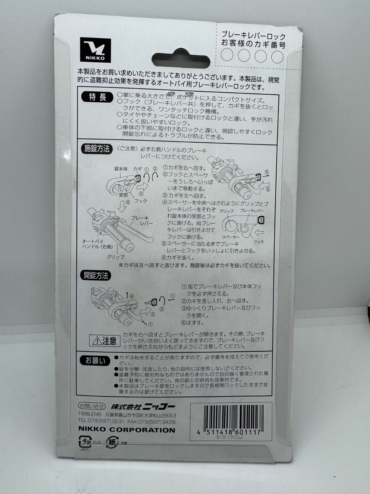 ★【訳あり】NIKKO ニッコー オートバイ用ブレーキレバーロック ※ディスクブレーキ車専用 N510