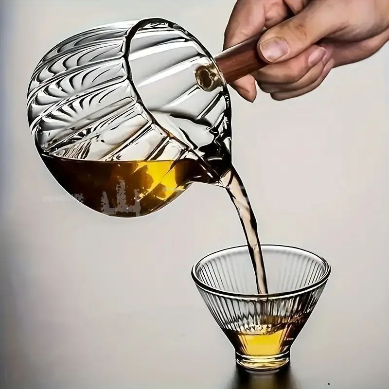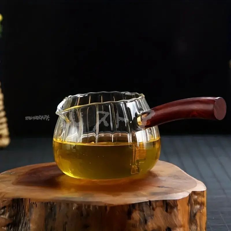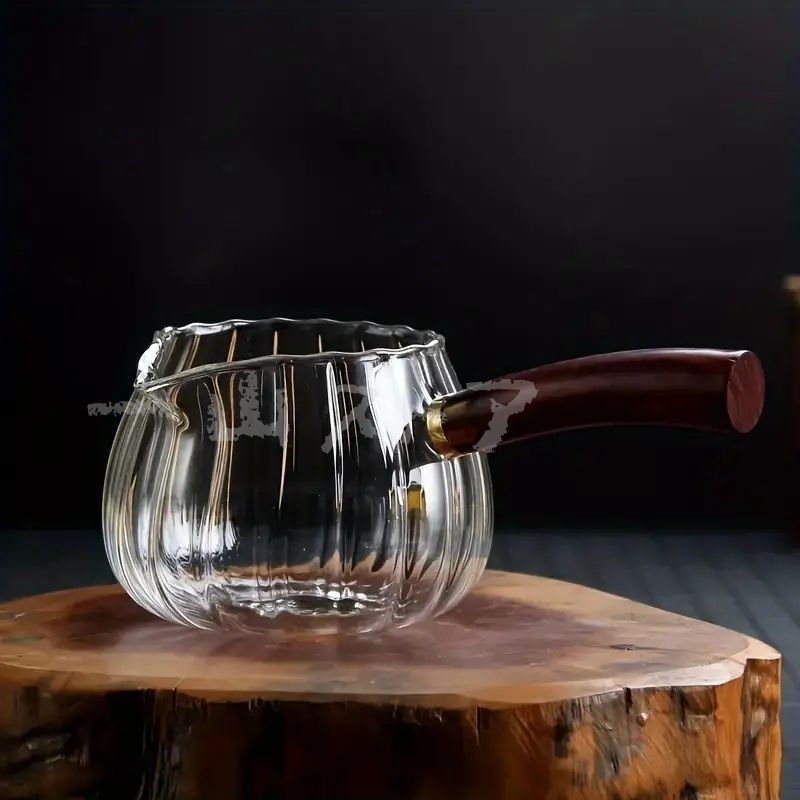 ガラス製ティーポット - 高品質なデザインと実用性の両立ガラスティーカップ サイドウッドハンドル付き、日本風透明ストライプティーディバイダーカップ、ティーポット、ティーリーク、ティーセット、家庭用レストランホテルオフィス用、ティーアクセサリー