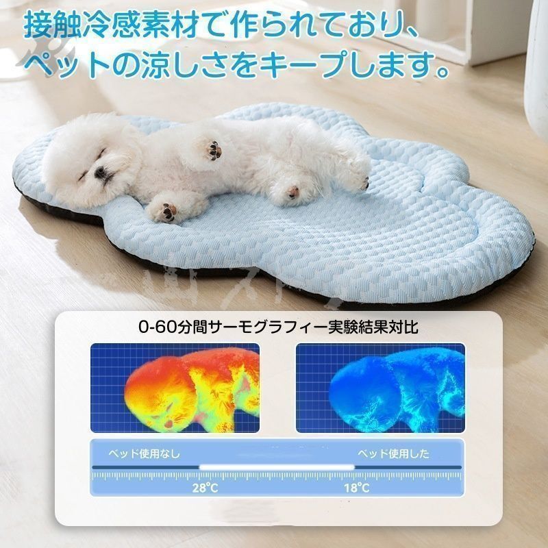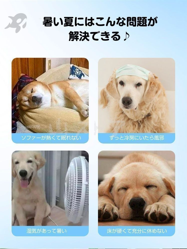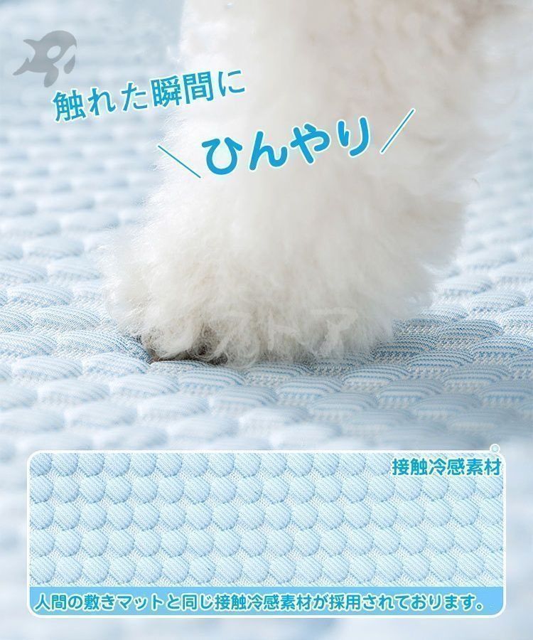 【電気代節約クールマット犬暑さ対策グッズ】:犬の熱中症防止のために、多くの方が24時間クーラーをつけてますが、電気代が予想以上にかかります。ひんやりマットを犬のベッドやケージに敷いて使って、ペットに涼しく冷感を与えてクーラーなしで、夏を涼しく過ごさせる猫用涼感クールマット。犬猫の夏暑さ対策品としては最適です。熱と汗をすばやく吸収します、暑い夏にペットが涼しくなるのに大いに役立ちます。このクールマットは電気と冷蔵が不要で、物理的で愛犬愛猫の体温を下がれ、省エネです。