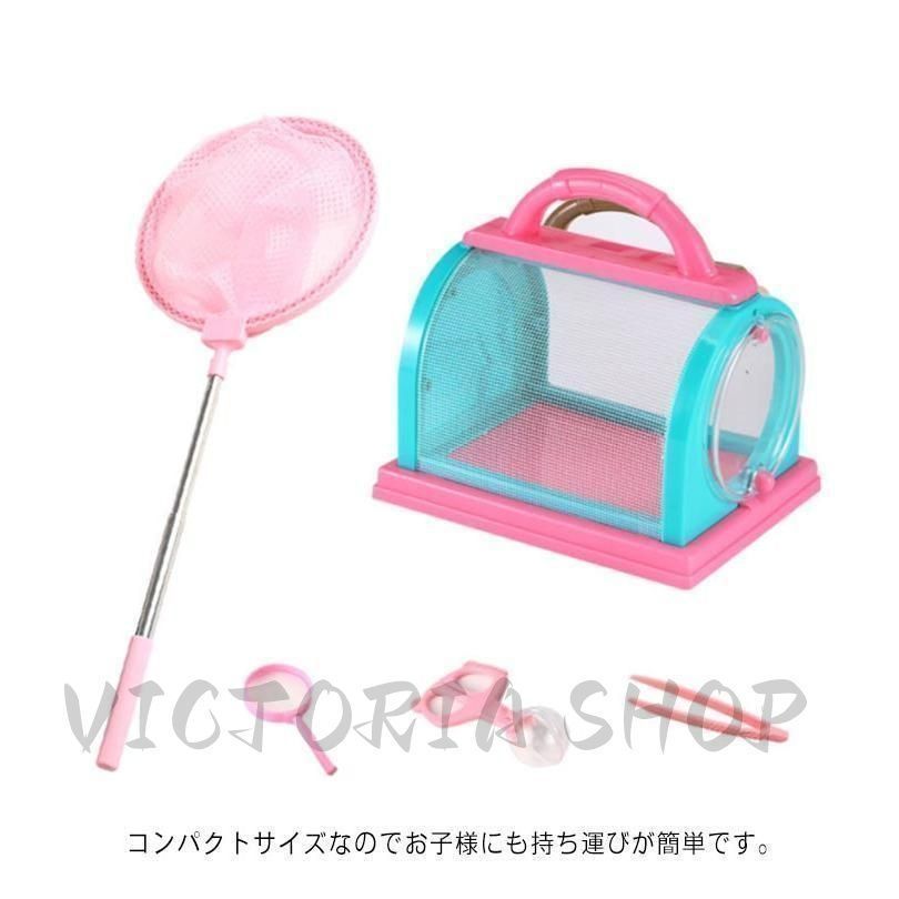【新品・未使用】自由研究 昆虫観察レンズ 虫観察 女の子 5点セット 昆虫採集 昆虫観察 子供 かわいい 虫かご 昆虫飼育ケース キッズ メッシュ メッシュかご