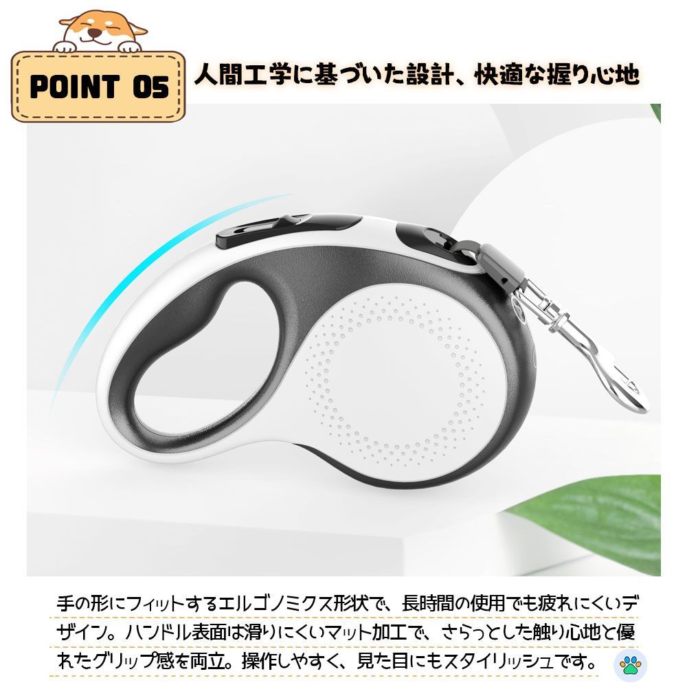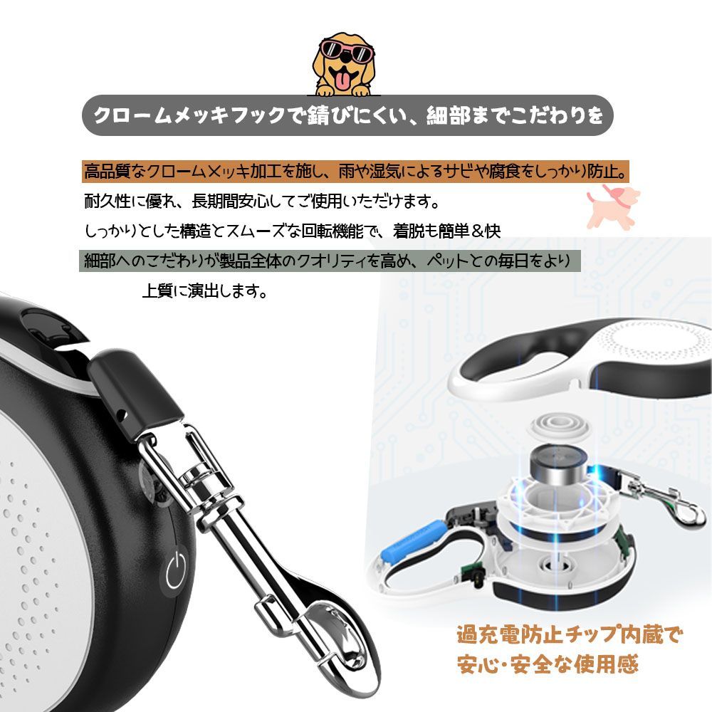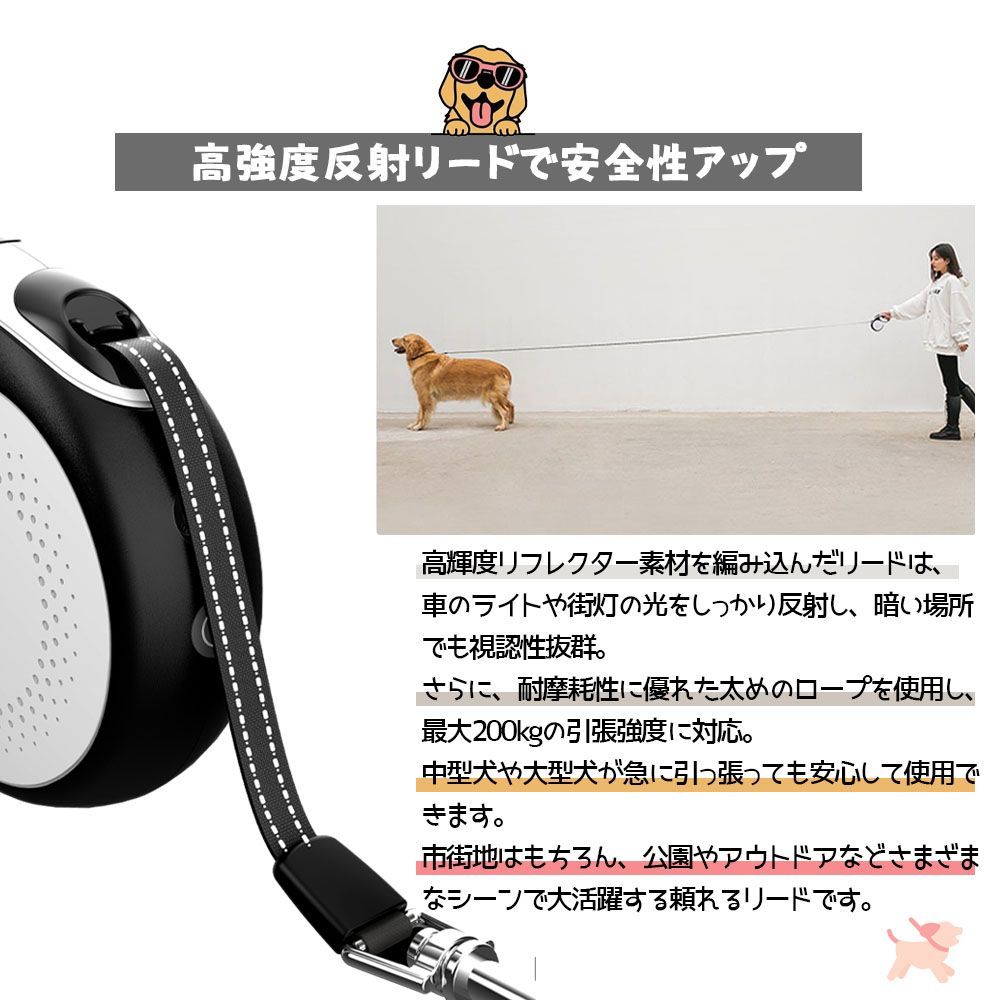 店主厳選★LEDライト付き自動伸縮ペット用リード 中大型犬対応・猫犬兼用・屋外携帯便利・爆走防止タイプ 5M
