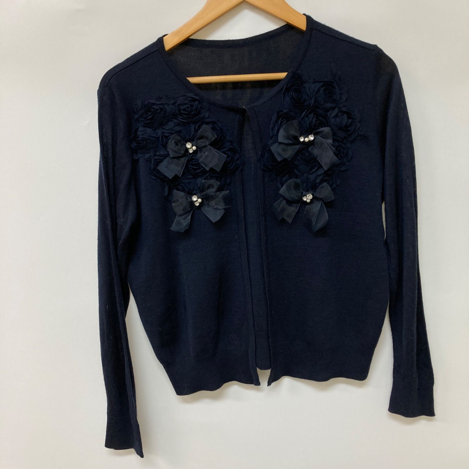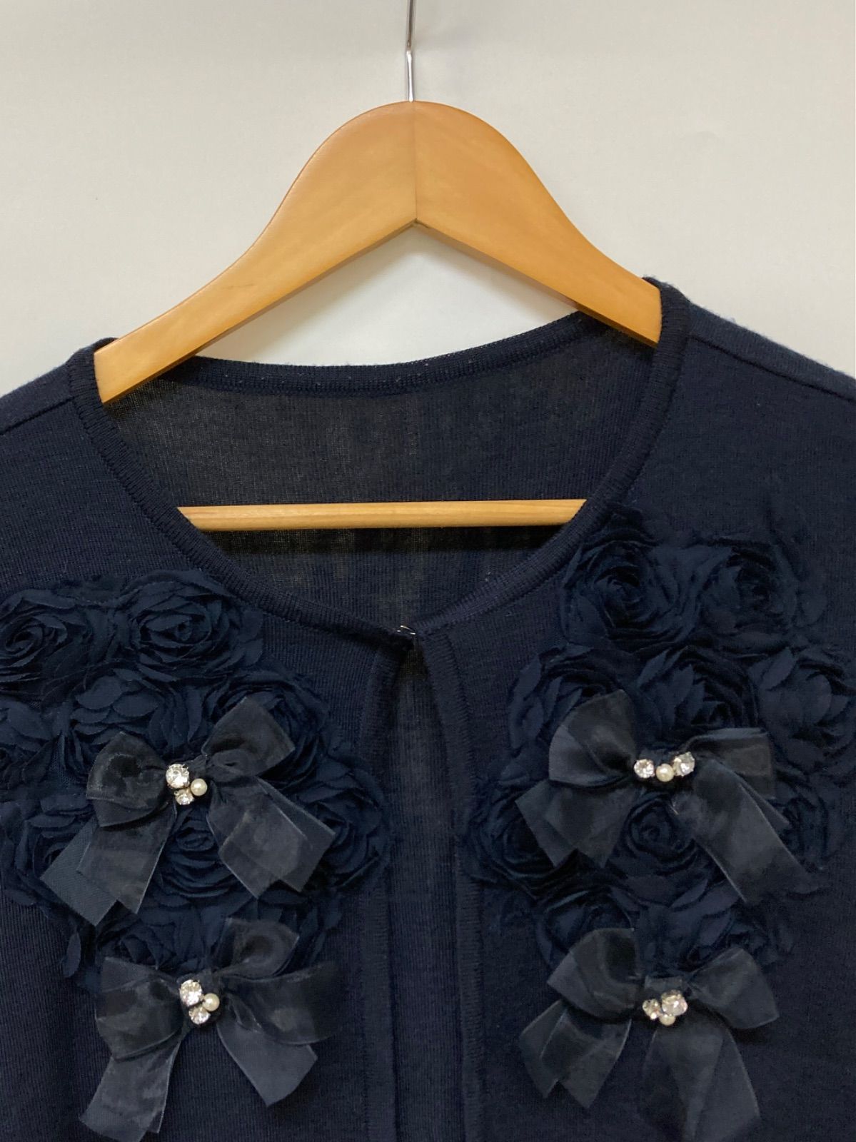トップス 長袖 カーディガン 花飾り ネイビー レディース 【CT2378】