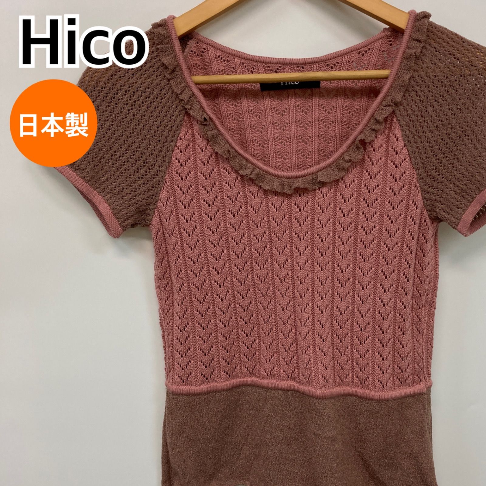 Hico ヒコ トップス 半袖 ニット ピンク 日本製 レディース 【CT2387】