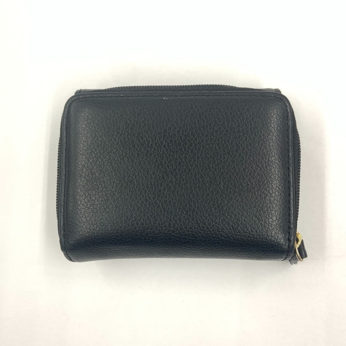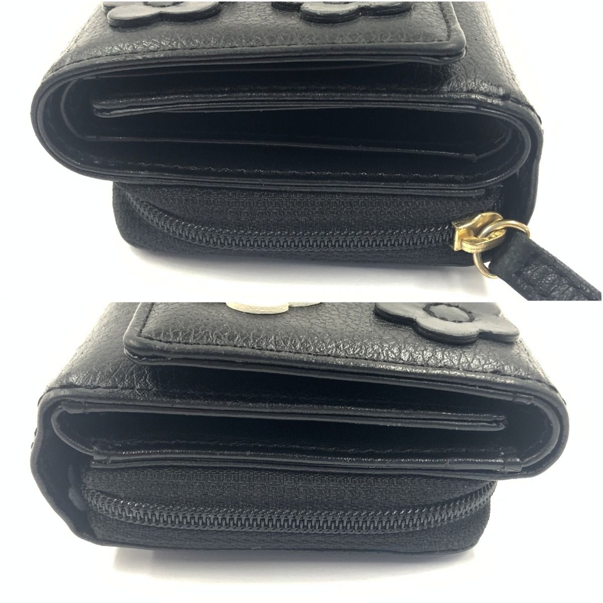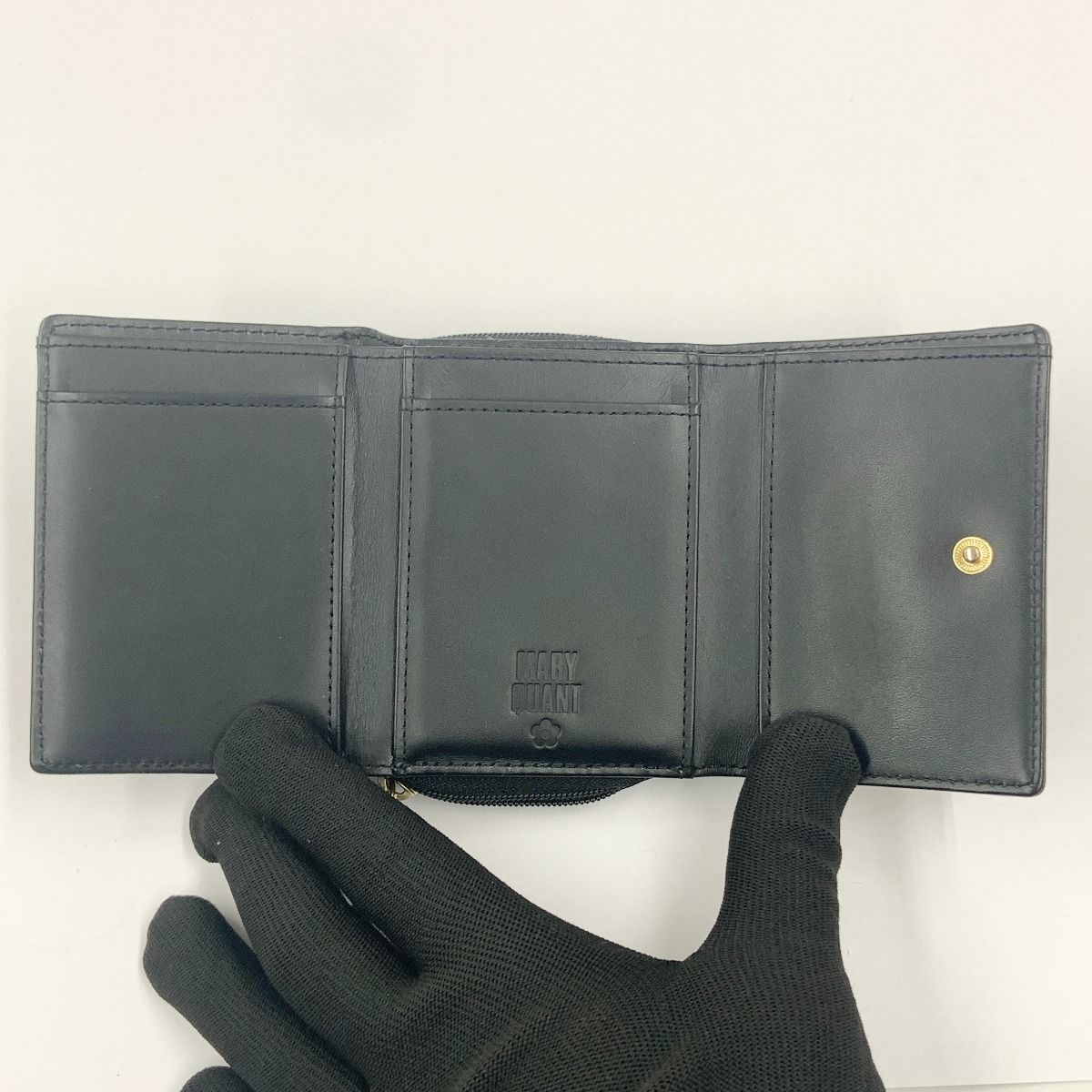【商品名】中古 MARY QUANT マリークワント フーリーデイジーパッチ ミニウォレット 三つ折り財布 ブラック x ホワイト