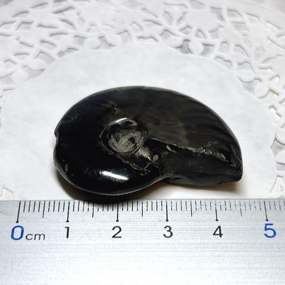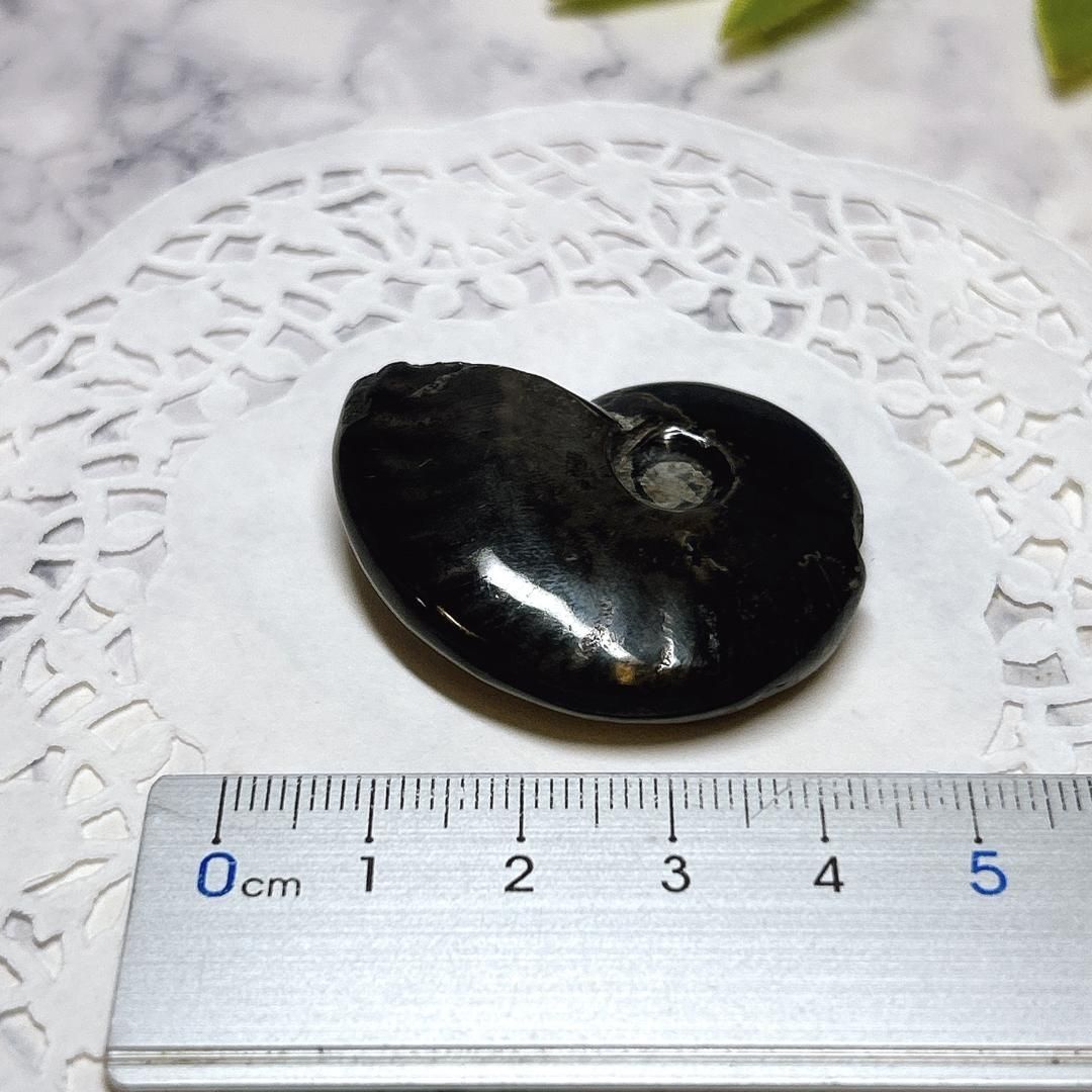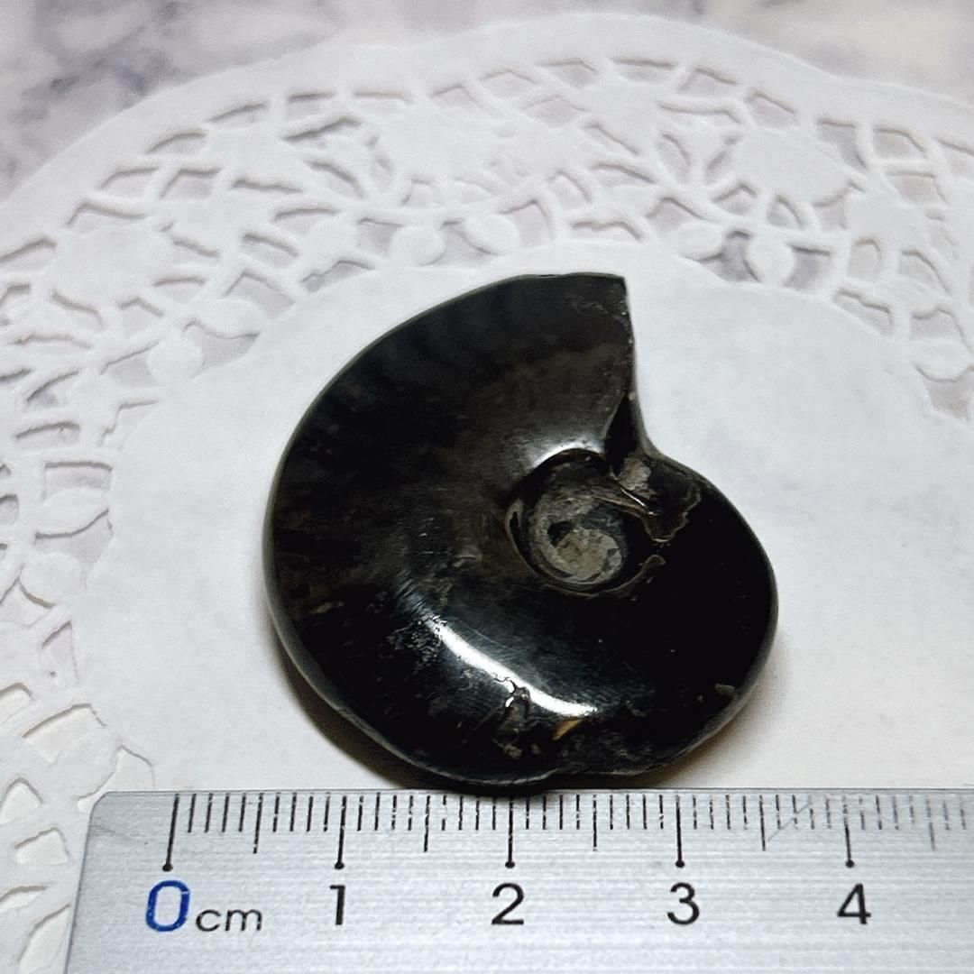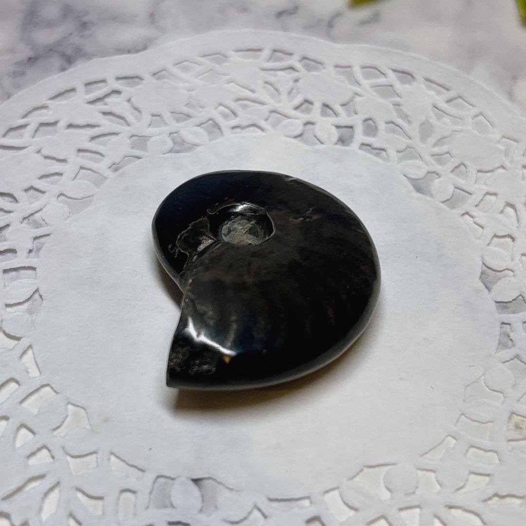 赤鉄鉱(Hematite)または磁赤鉄鉱(Maghemite)になって黒くなったアンモナイト。磁石を近づけて反応すれば磁赤鉄鉱。
