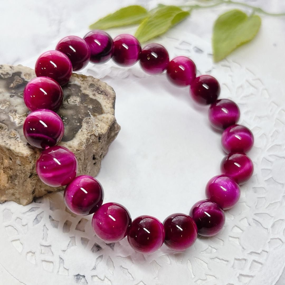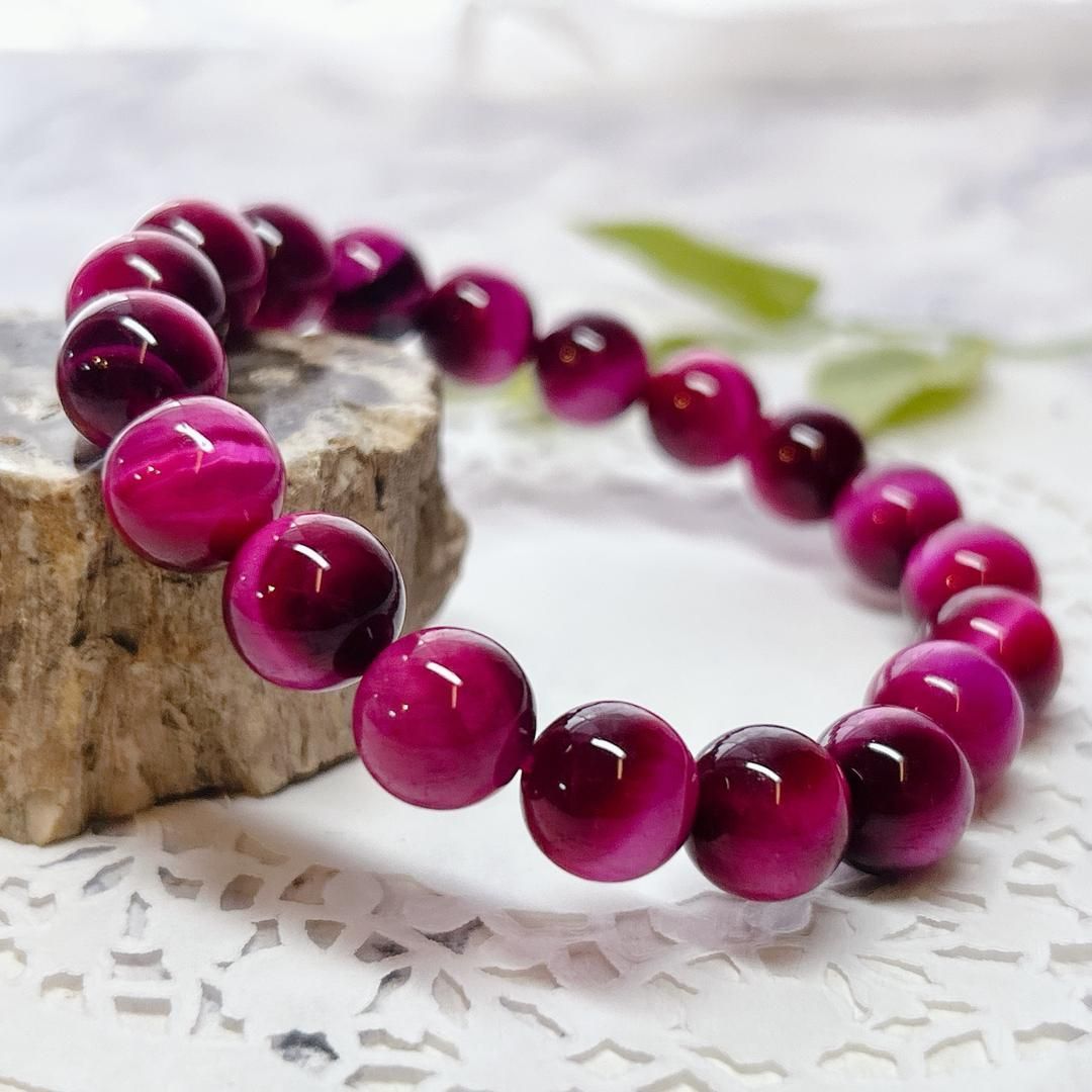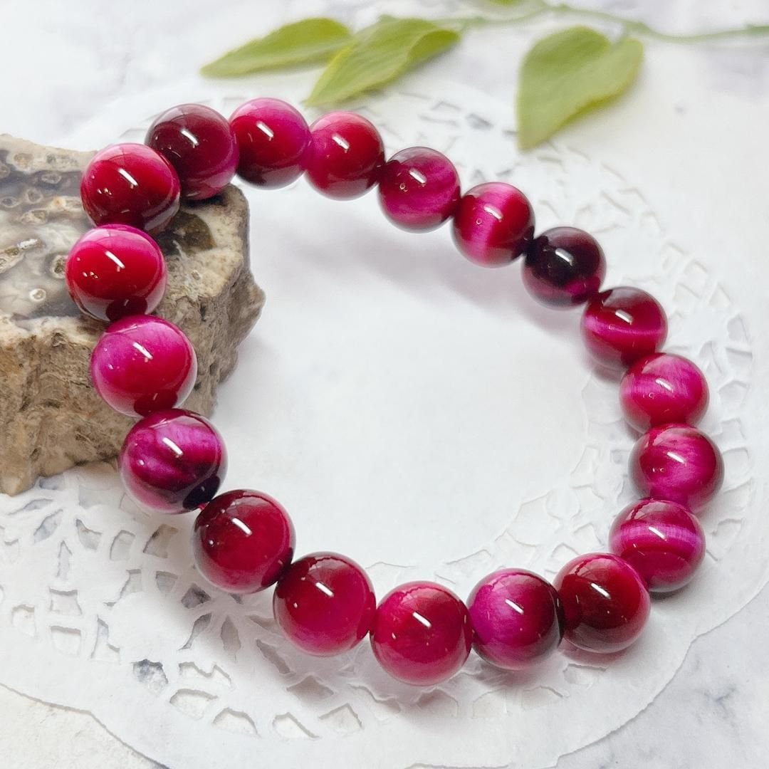 鮮やかなピンクが華やかなピンクタイガーアイブレスレット(着色)
