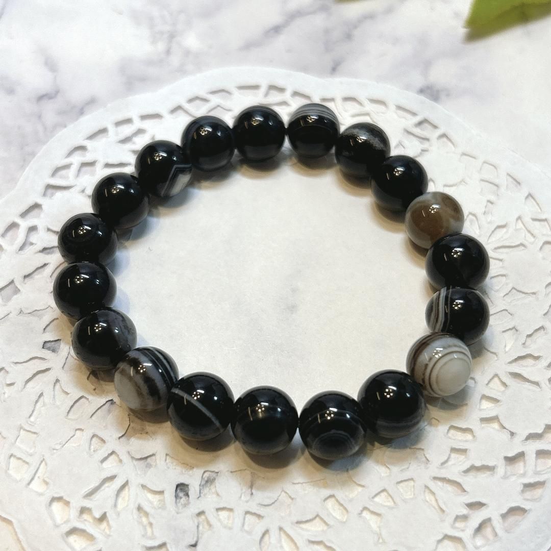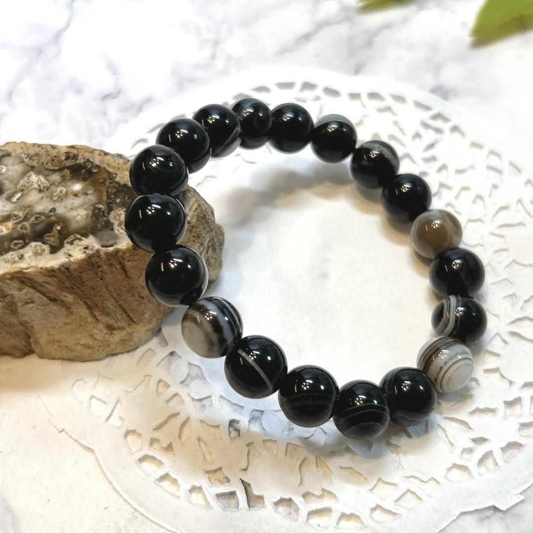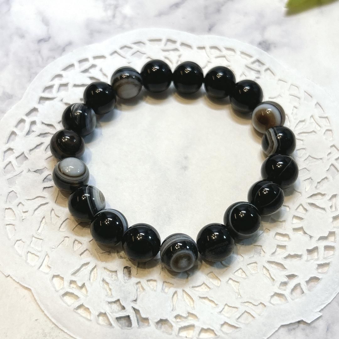 めのうに白い模様が入っており、この模様が眼の様に見えることから、アイアゲートと呼ばれています。