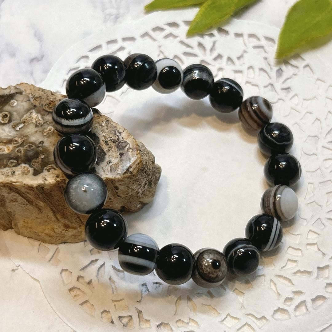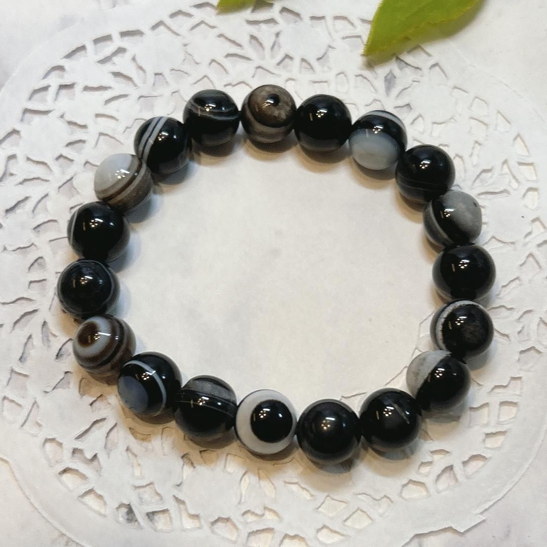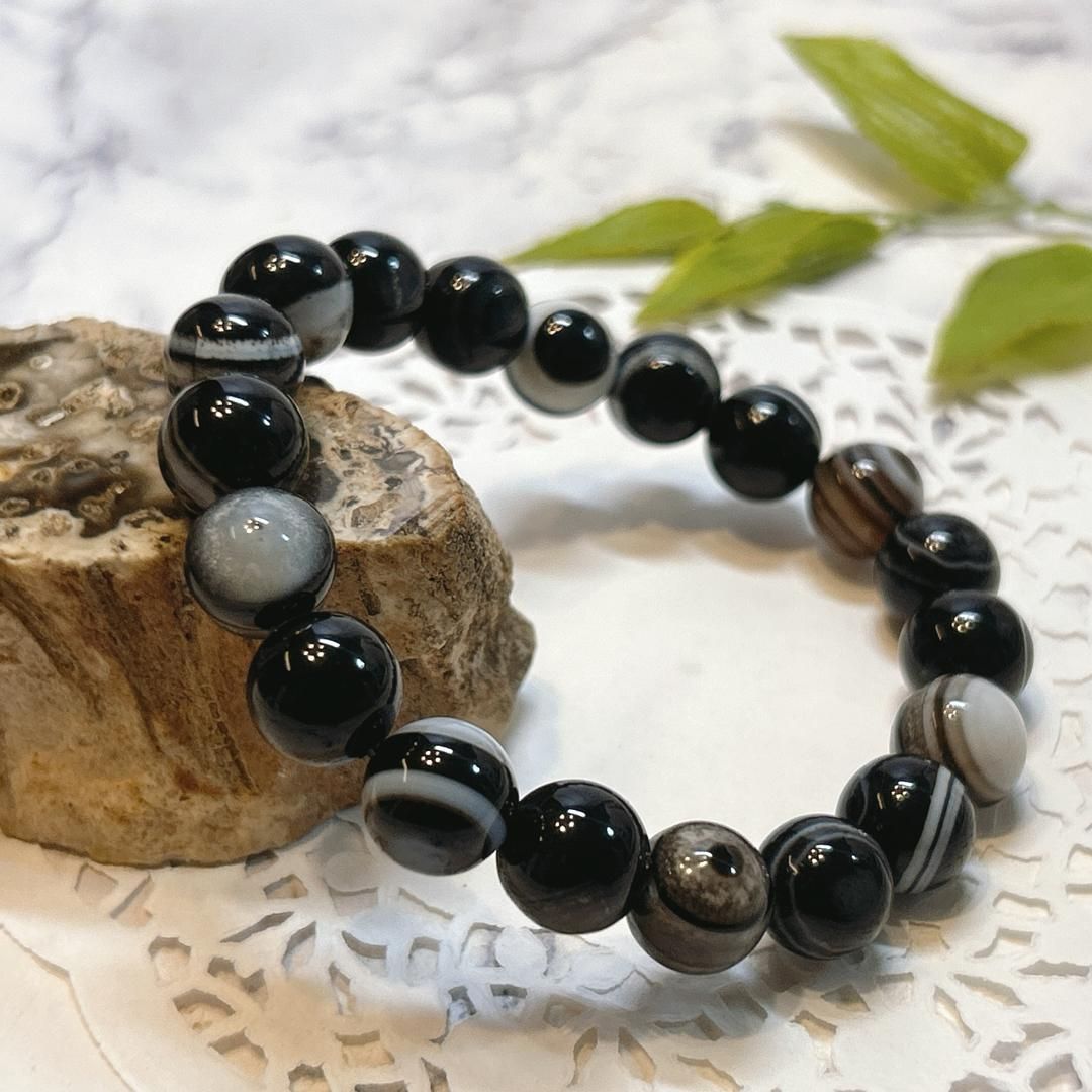 めのうに白い模様が入っており、この模様が眼の様に見えることから、アイアゲートと呼ばれています。