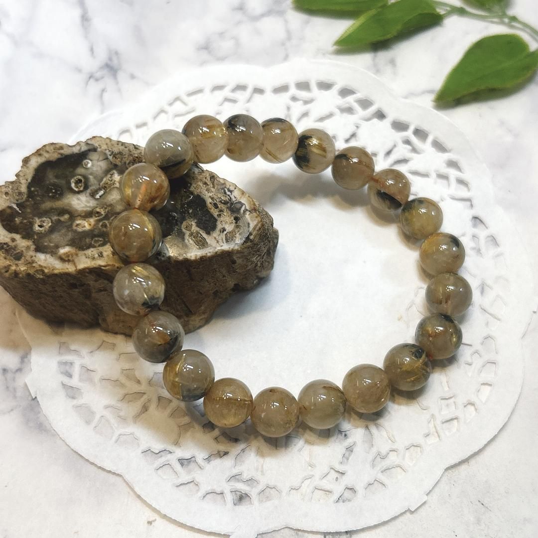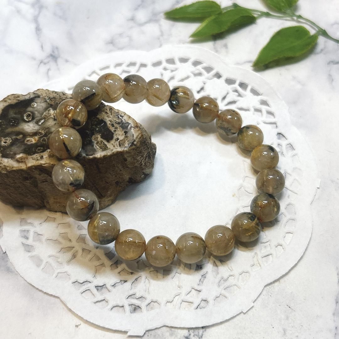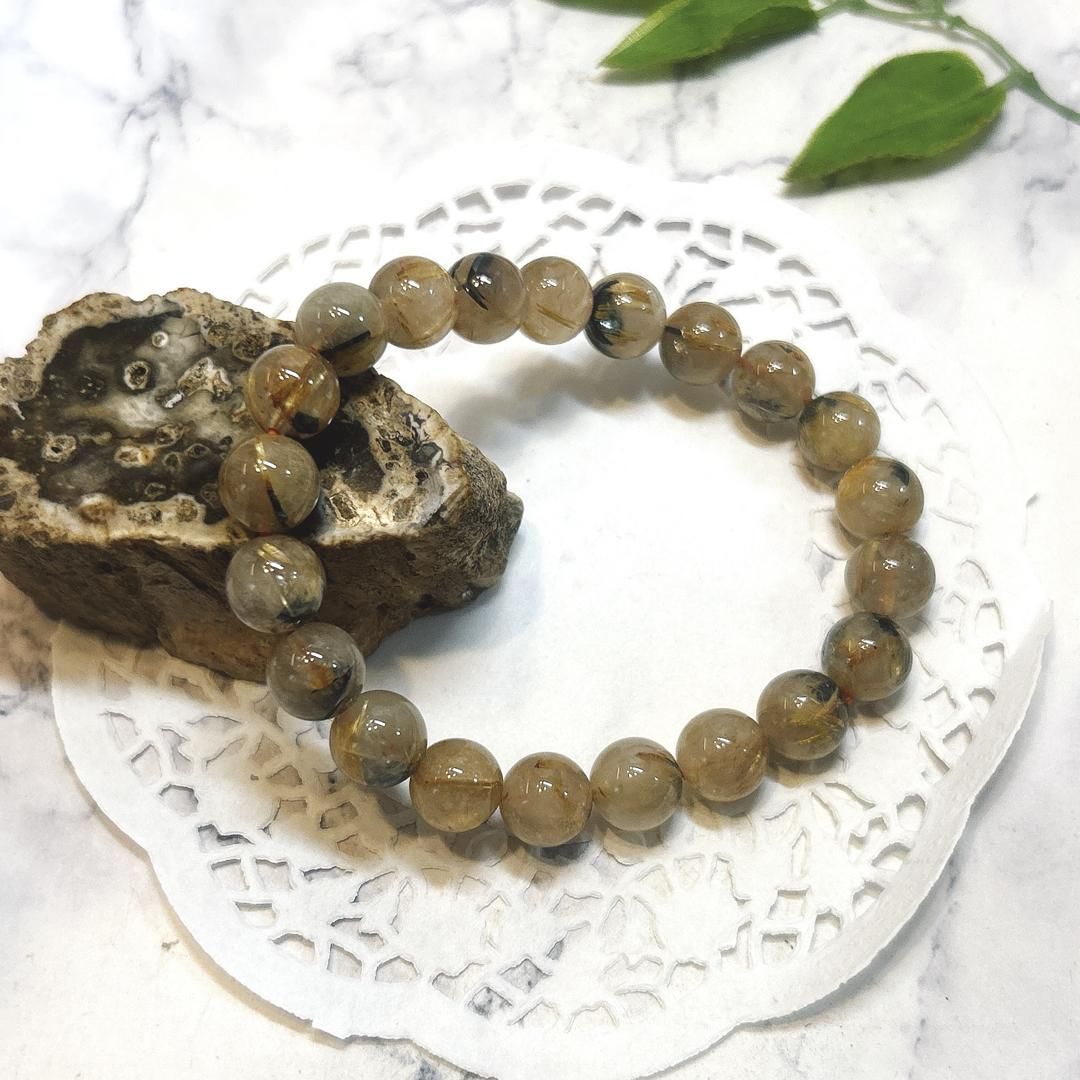 水晶の中に、金色の針のような鉱物=ルチルが入っていることから、