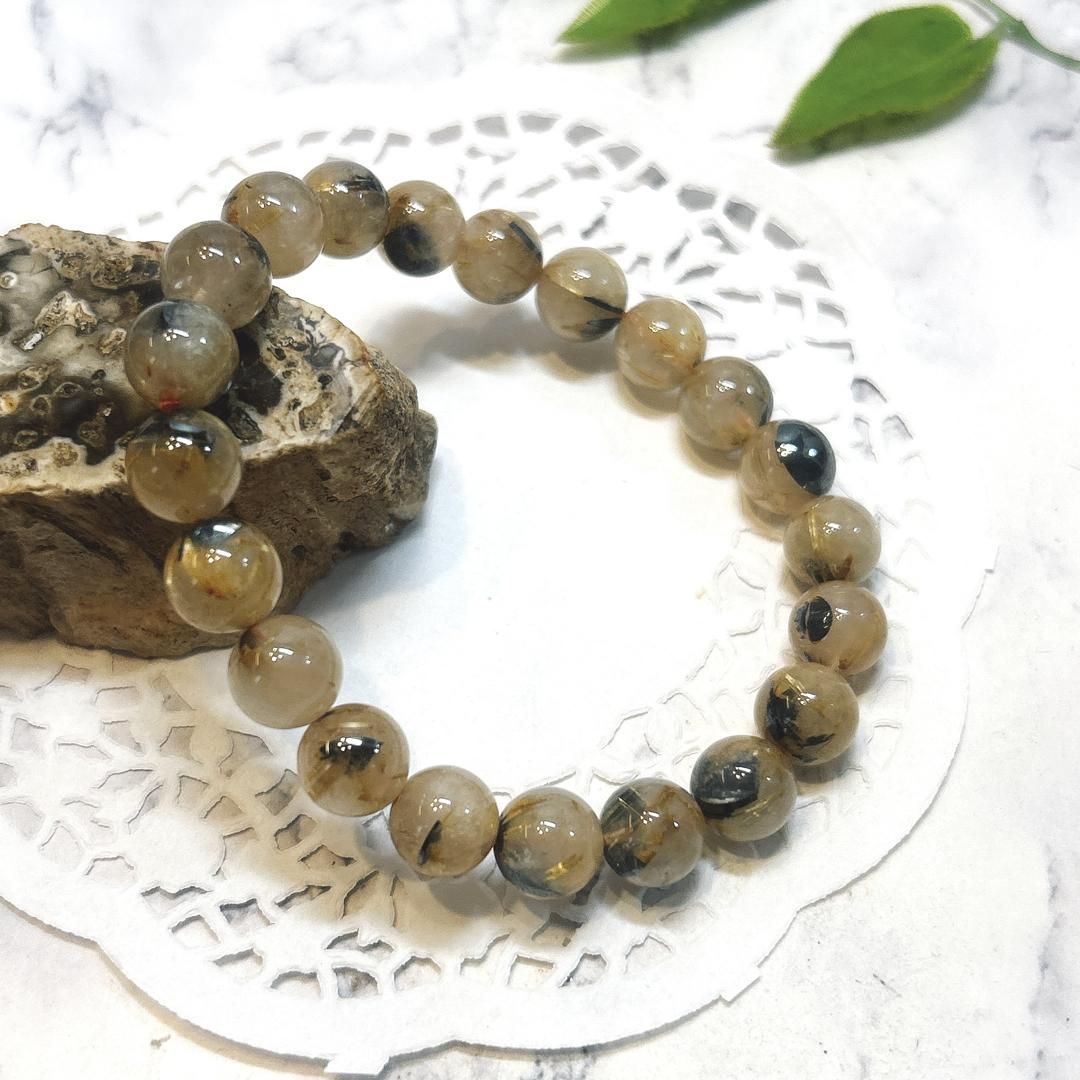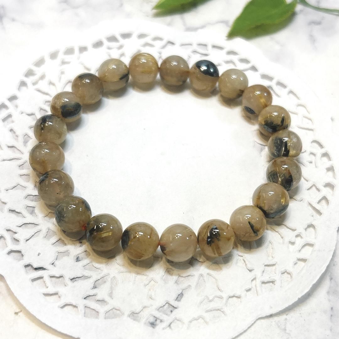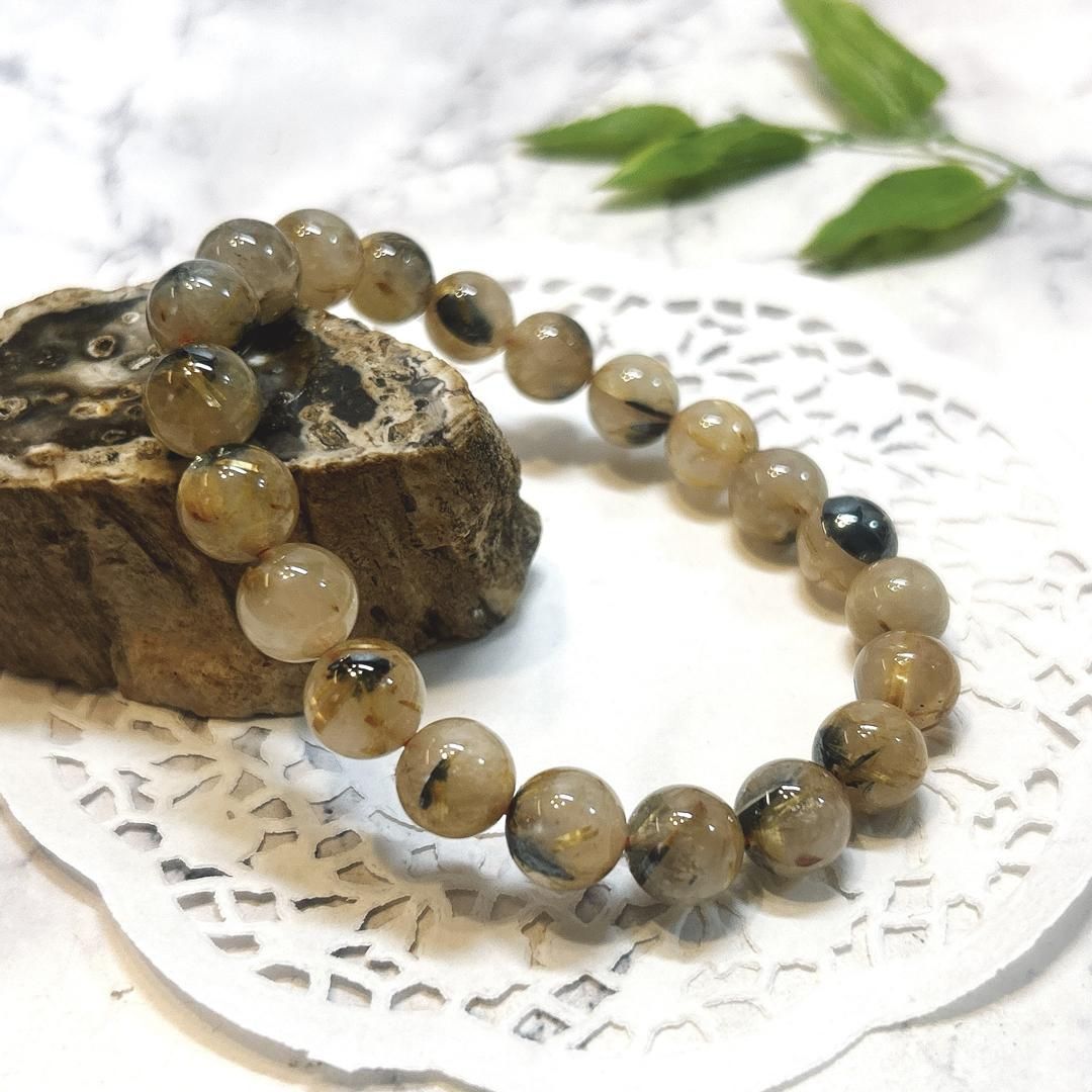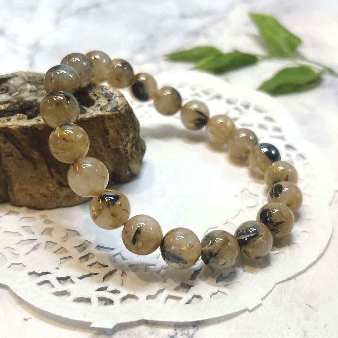 水晶の中に、金色の針のような鉱物=ルチルが入っていることから、